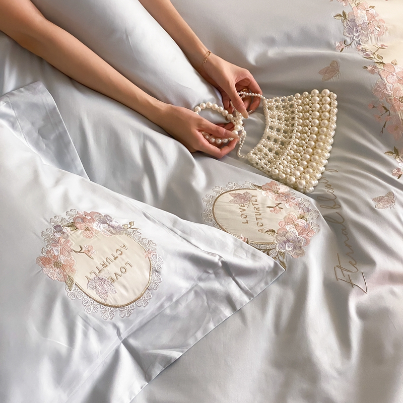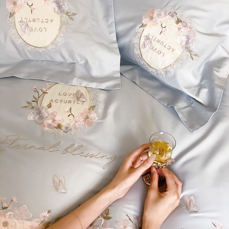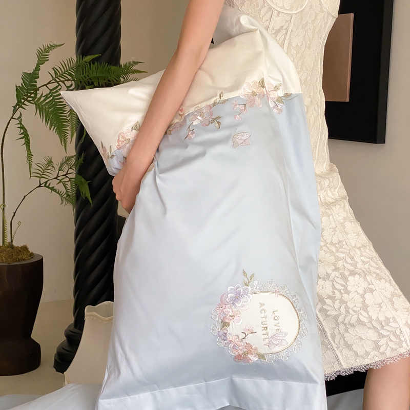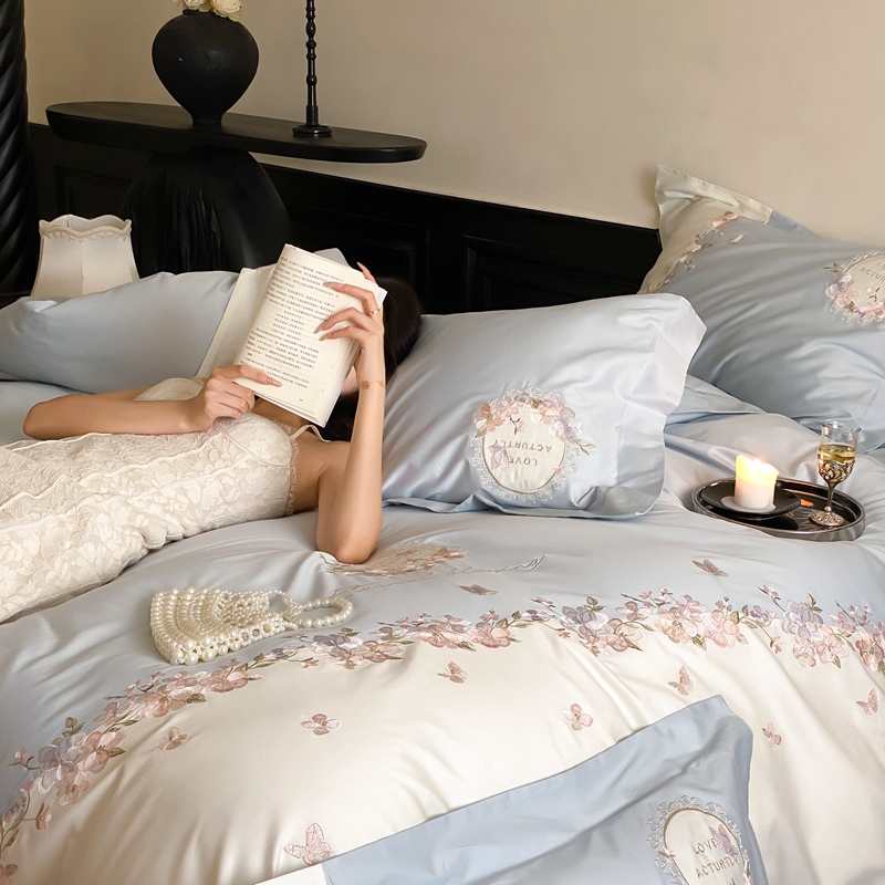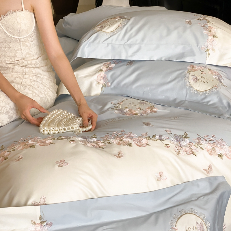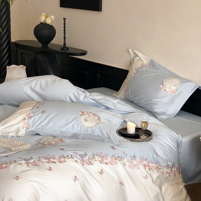 商品名称:馨蕊家居 2024秋冬新品100S高奢简约长绒棉四件套-茉莉 茉莉 北卡蓝