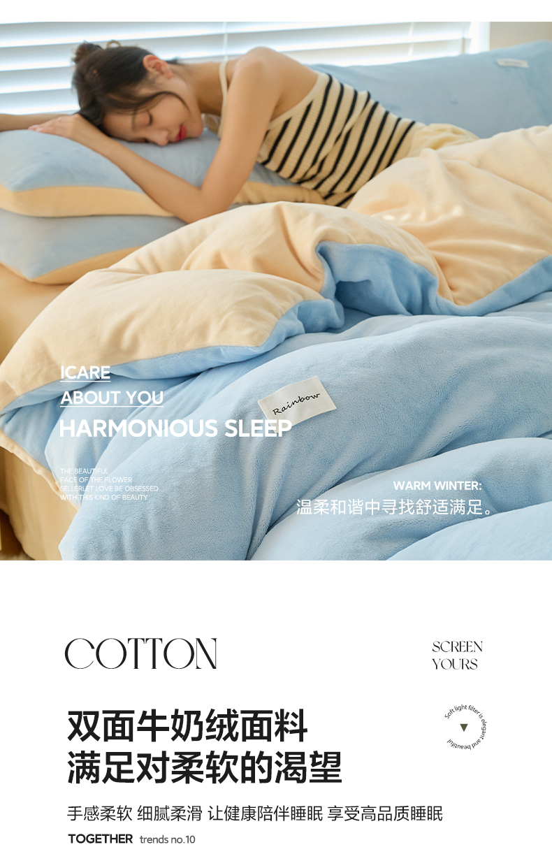 当前位置: 91家纺网 > 商品网购 > 床上用品 > 被套 > 晨曦家纺 2024新款ins简约风牛奶绒双拼单被套 奶提米紫