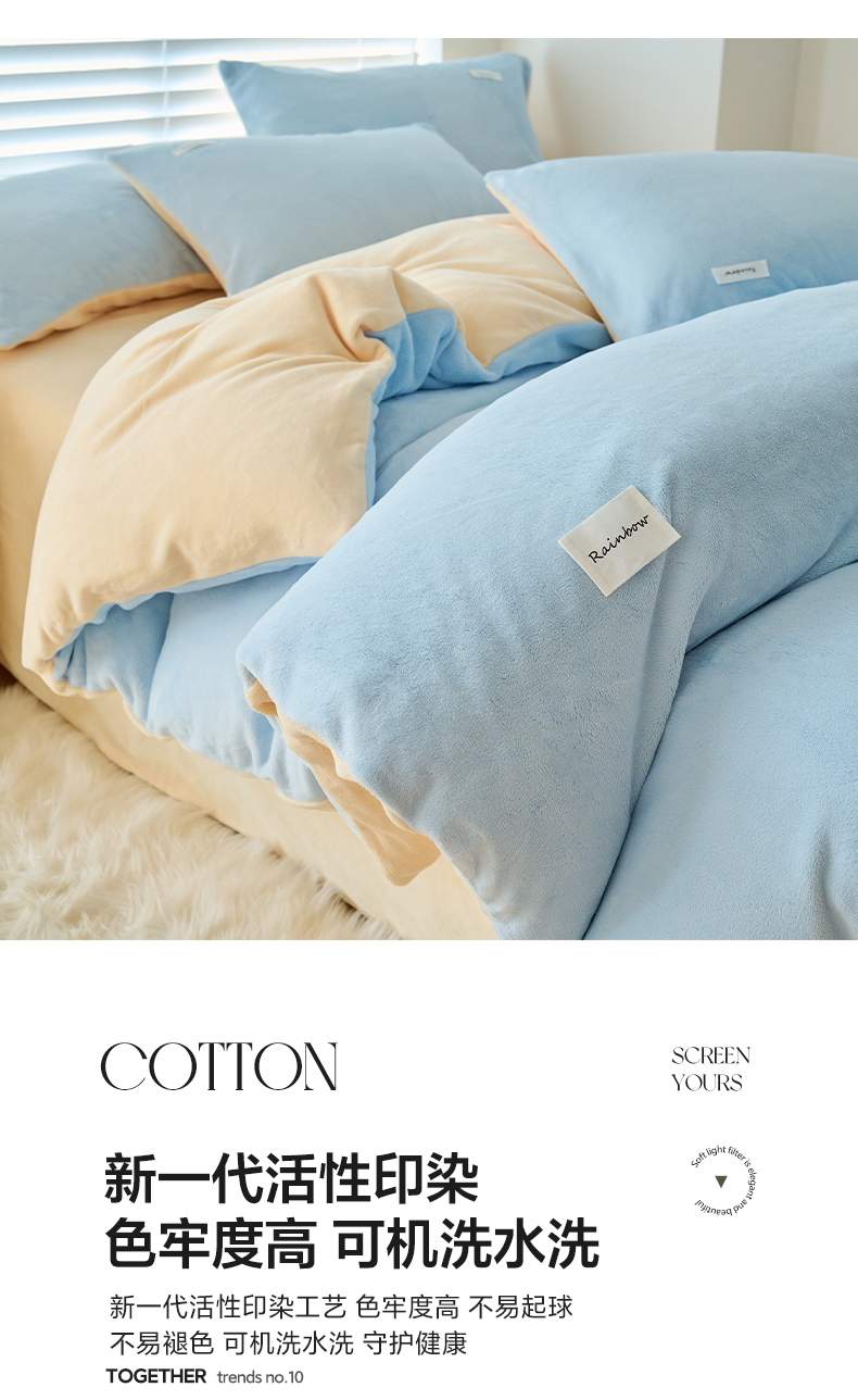 • 91家纺网 家纺一手货源 找家纺 晨曦家纺 2024新款ins简约风牛奶绒双拼单被套 奶提米紫