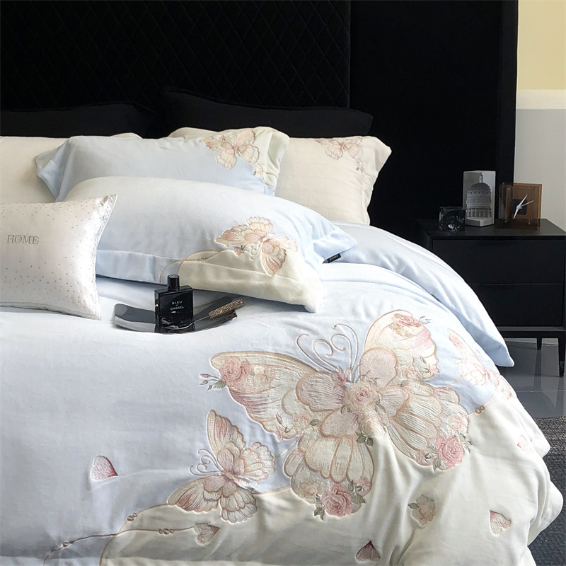 馨蕊家居 2024秋冬轻奢煦暖绒高精密刺绣绒梦幻系列四件套 绒梦幻-北卡蓝
