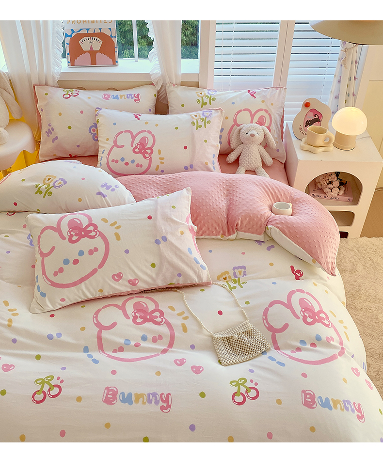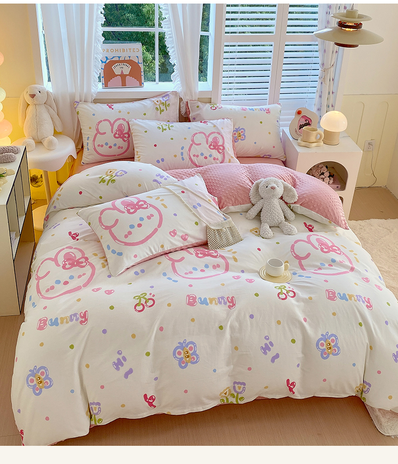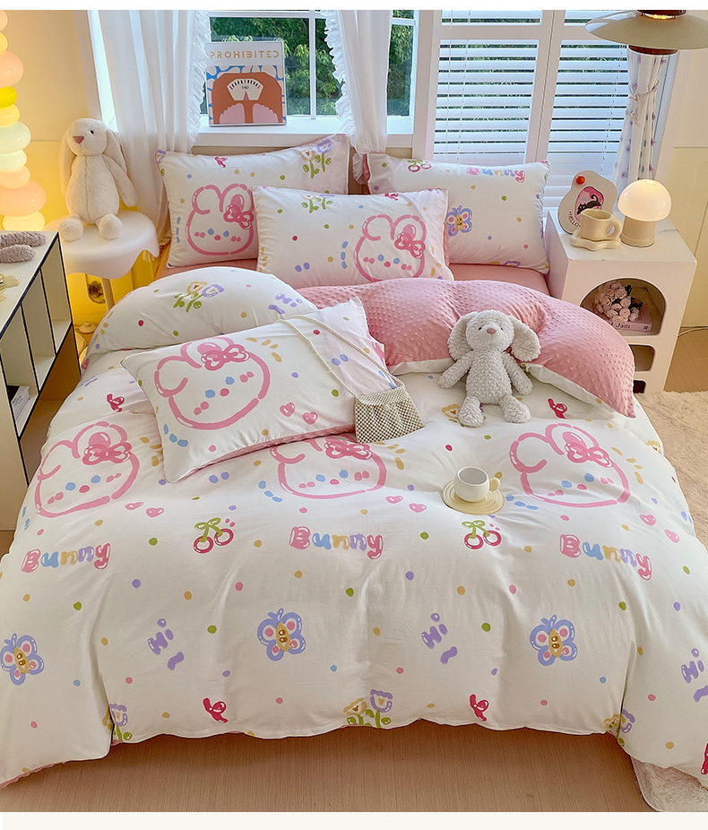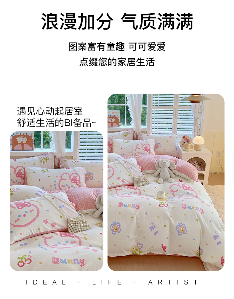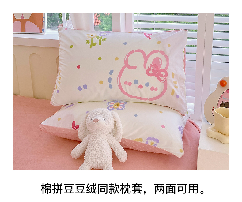 当前位置: 91家纺网 > 商品网购 > 床品套件 > 四件套 > 其它四件套 > 金鑫汇家纺 2024新款棉加豆豆绒系列四件套 奇趣小兔