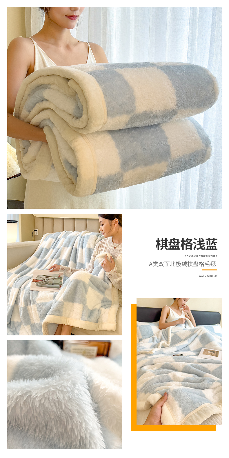 当前位置: 91家纺网 > 商品网购 > 毛毯休闲毯绒毯 > 毛毯 > 慕木家纺 2025秋冬新款A类北极绒棋盘格双面毛毯 棋盘格三层夹棉毛毯-浅蓝+白