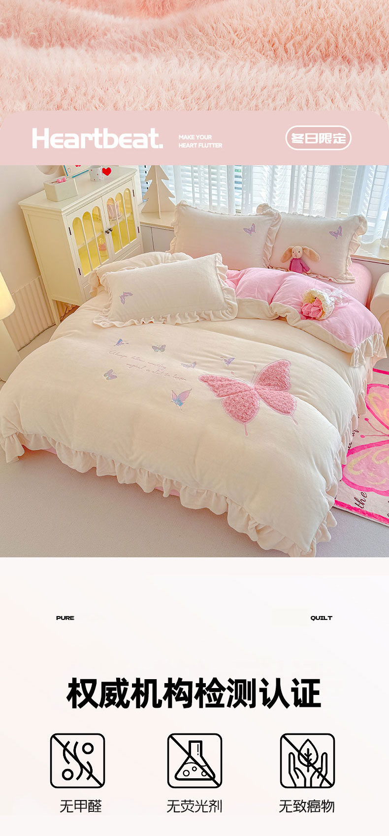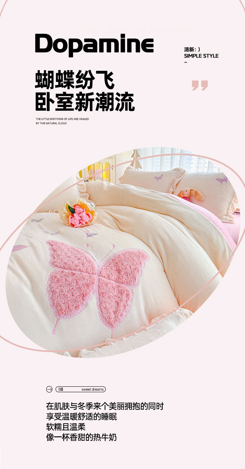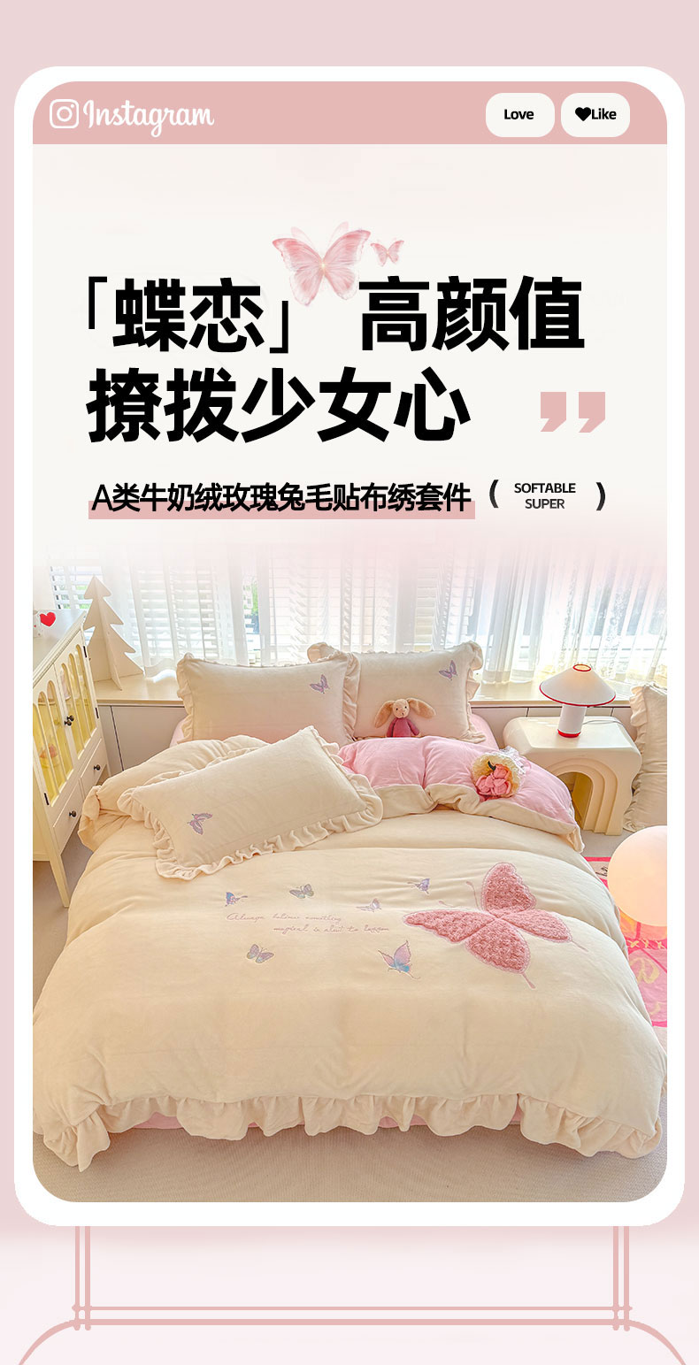 当前位置: 91家纺网 > 商品网购 > 床品套件 > 四件套 > 牛奶绒四件套 > 灰鲸 2025新款A类牛奶绒玫瑰兔毛贴布绣四件套 贴布绣蝶恋-奶昔白+樱花粉