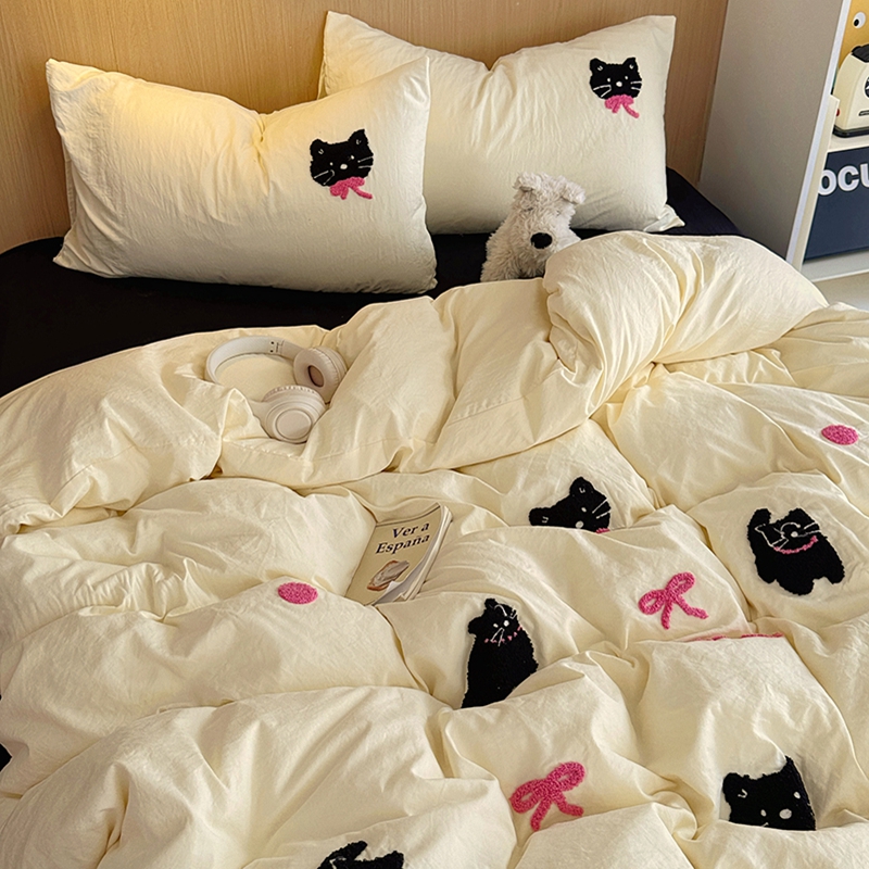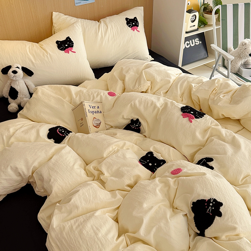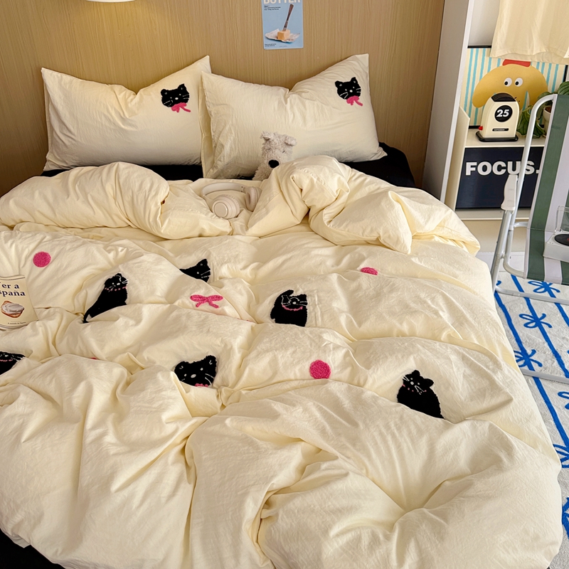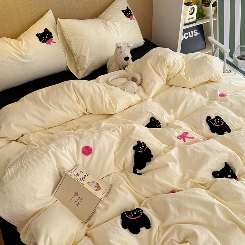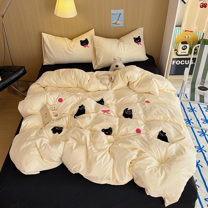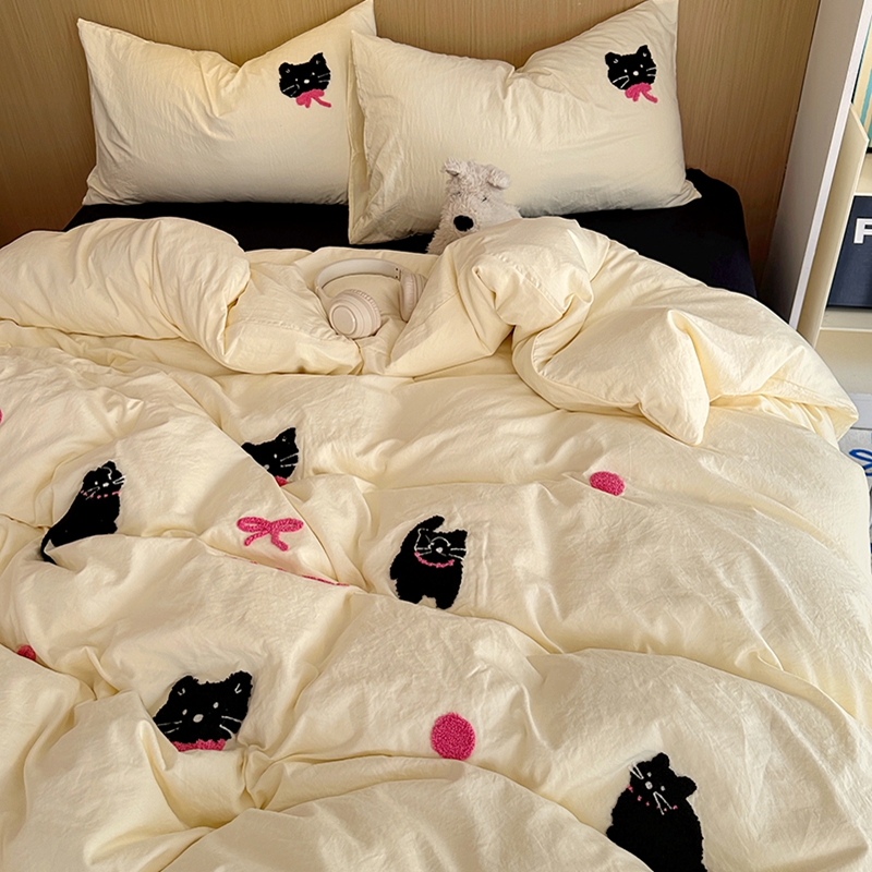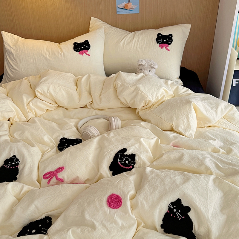 当前位置: 91家纺网 > 商品网购 > 床品套件 > 四件套 > 水洗棉四件套 > 阿曼达 2024新款ins博主风超甜酷美少女粉系黑猫软糯糯水洗m毛巾绣纯色双拼四件套 粉系黑猫-米