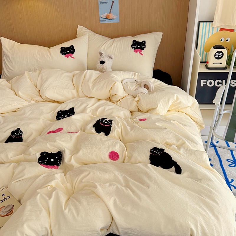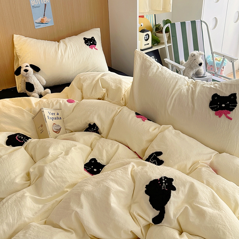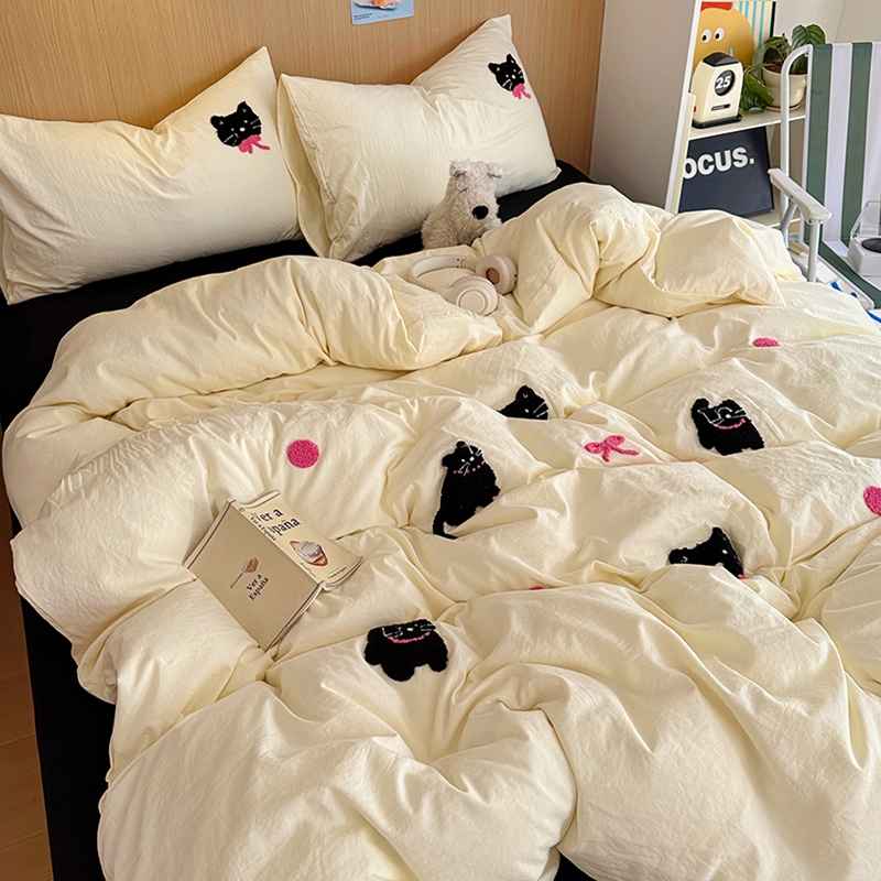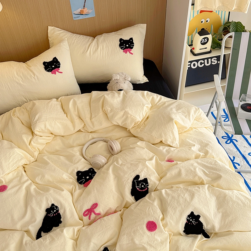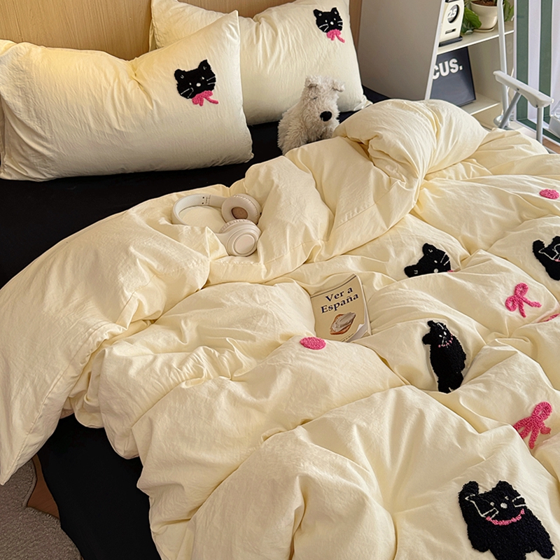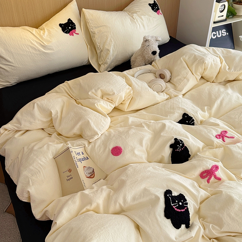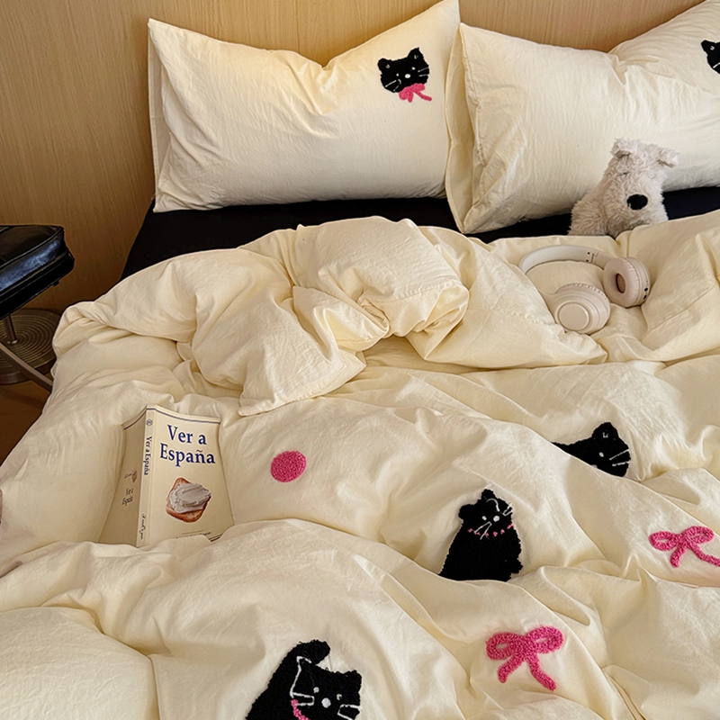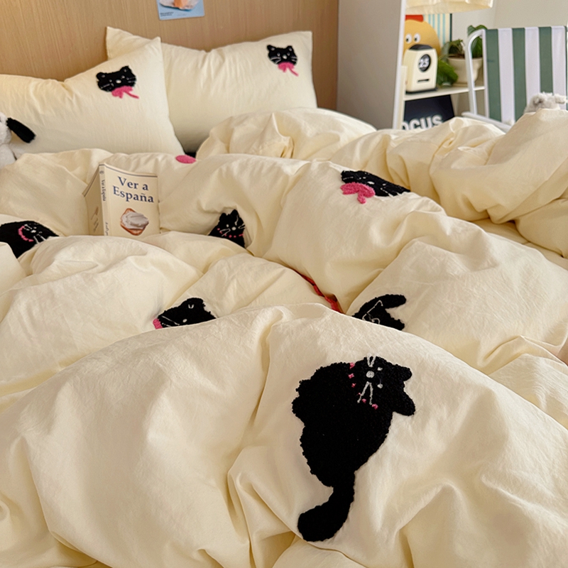 当前位置: 91家纺网 > 商品网购 > 床品套件 > 四件套 > 水洗棉四件套 > 阿曼达 2024新款ins博主风超甜酷美少女粉系黑猫软糯糯水洗m毛巾绣纯色双拼四件套 粉系黑猫-米