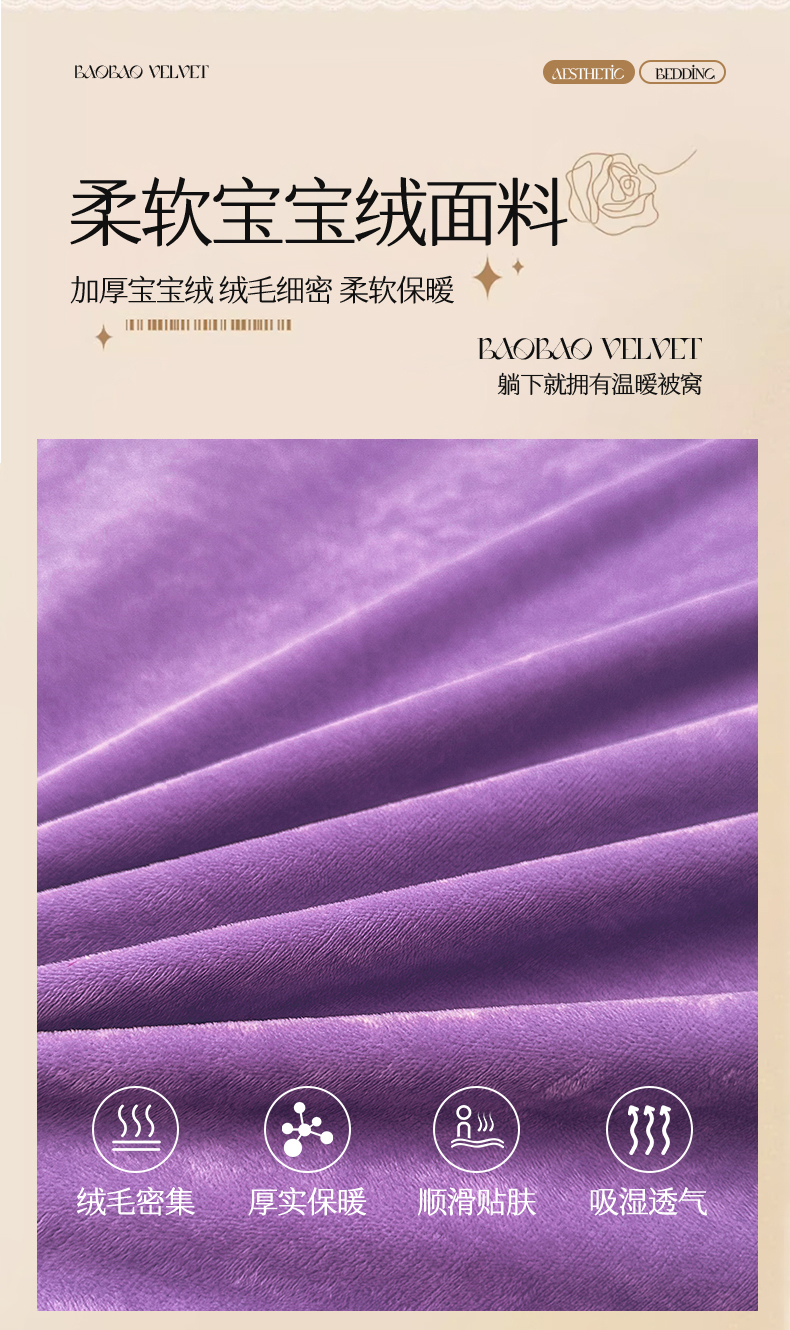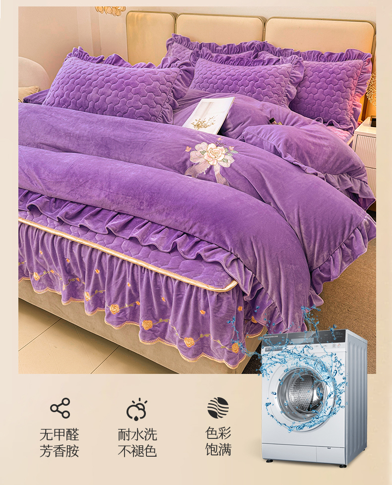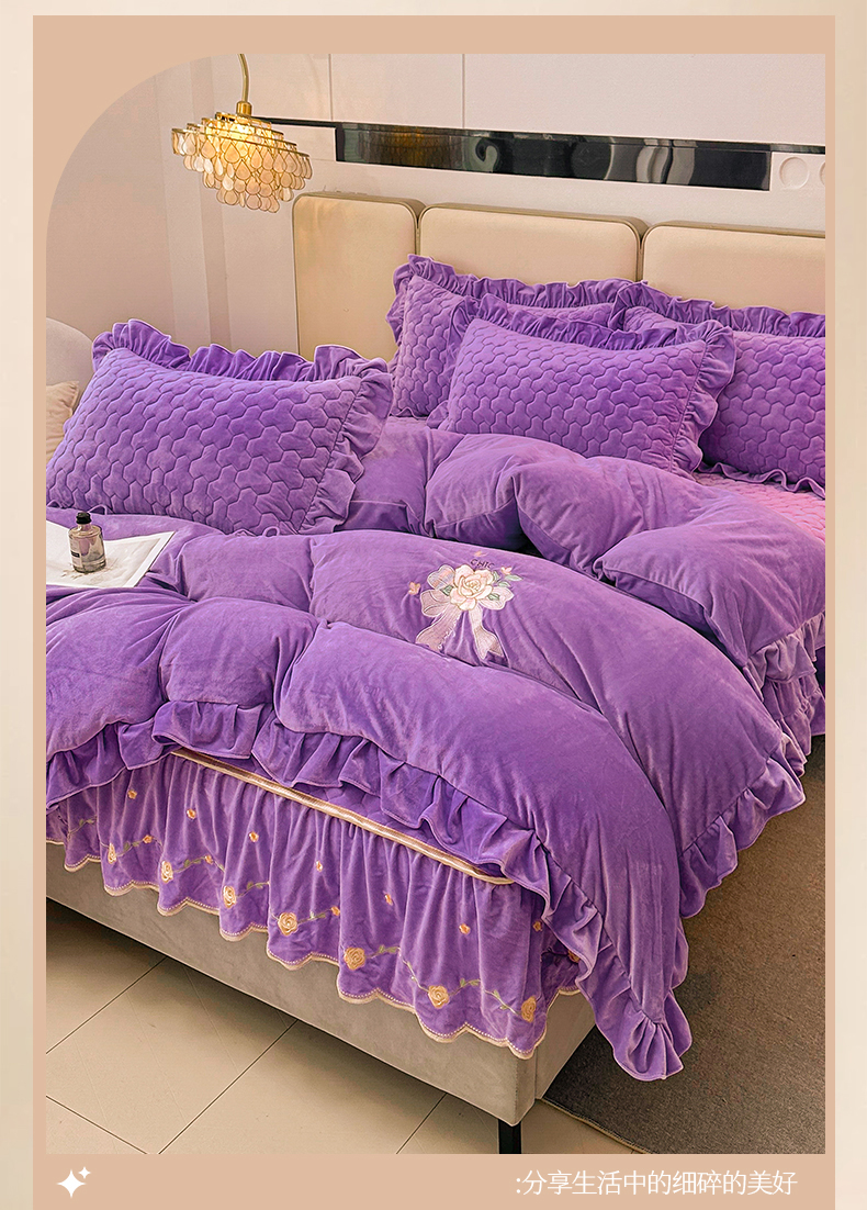 当前位置: 91家纺网 > 商品网购 > 床品套件 > 四件套 > 宝宝绒四件套 > 恒爱家纺 2024新款宝宝绒霞姿月韵四件套 浪漫紫