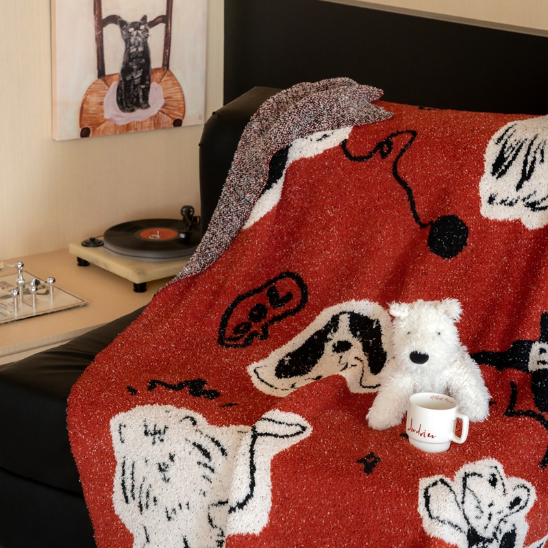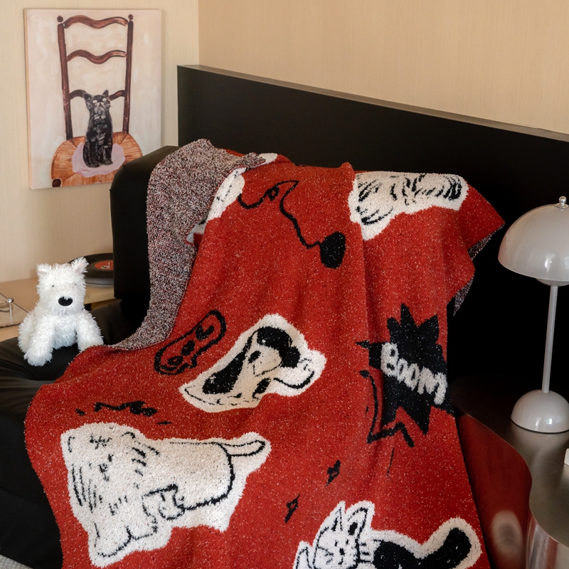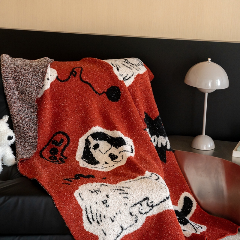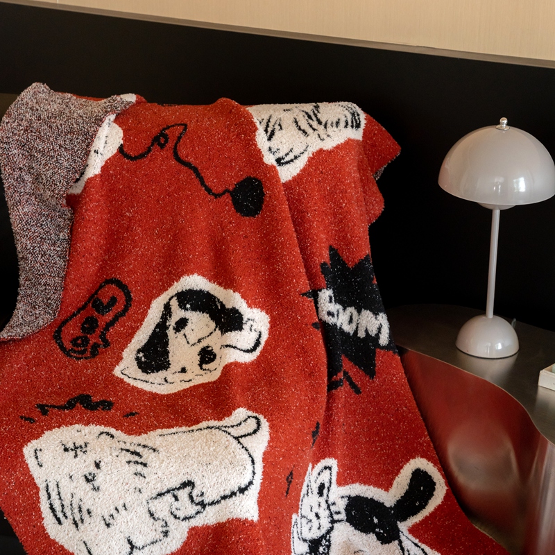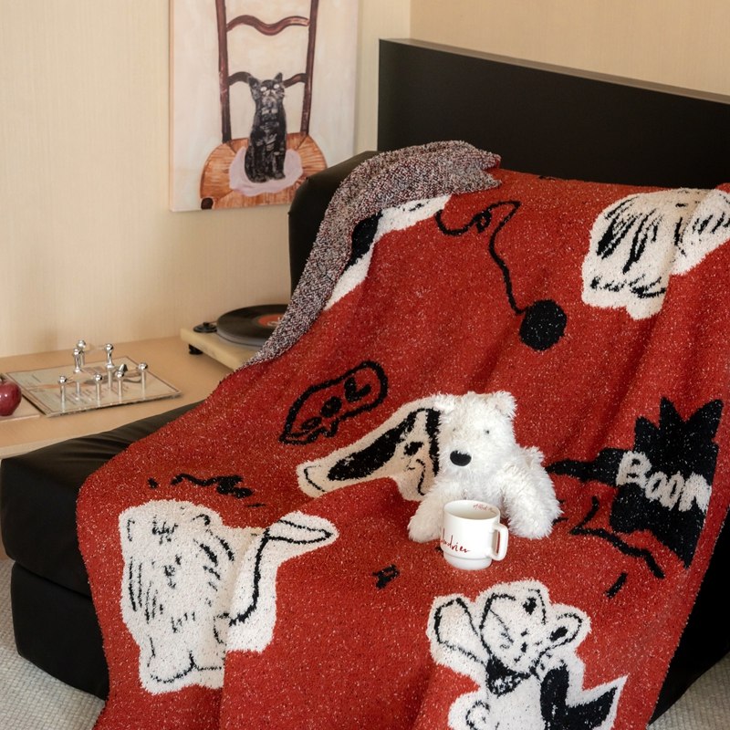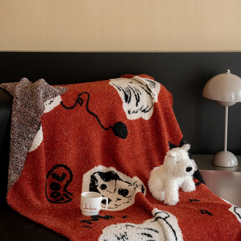 圆岛 2024新款多功能针织半边绒毛毯 抽象小狗