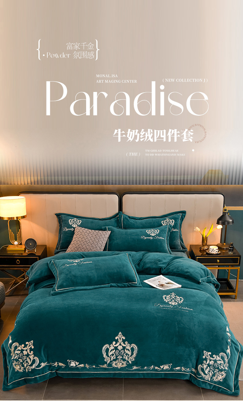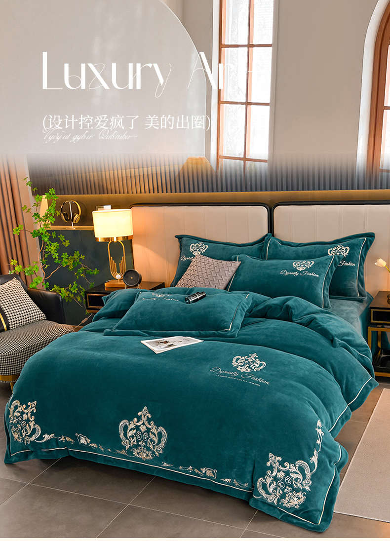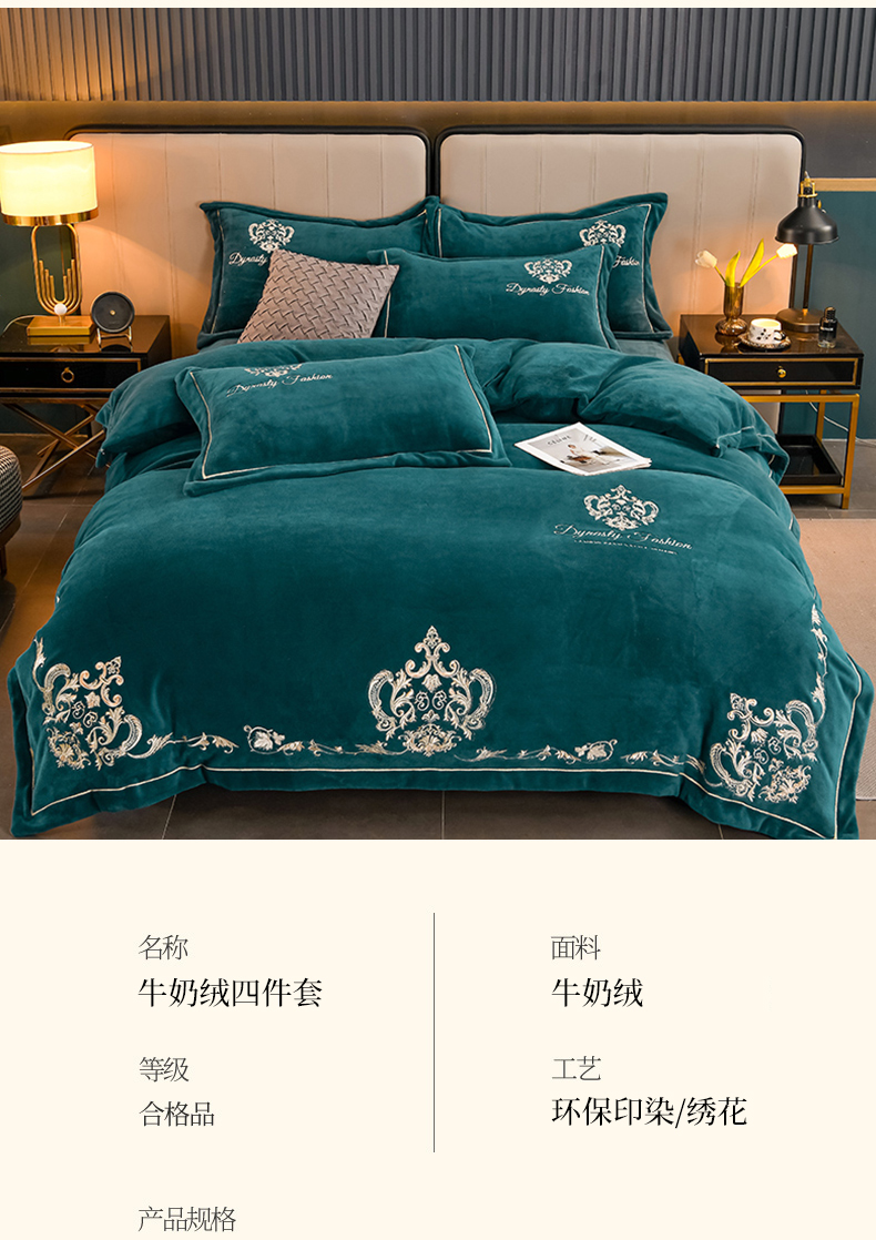 (总)沐妍家纺 2024新款欧式重工刺绣绣花纯色牛奶绒四件套,皇冠-宝石蓝,皇冠-豆沙红,皇冠-粉玉,皇冠-绅士灰,皇冠-午夜蓝,皇冠-喜庆红