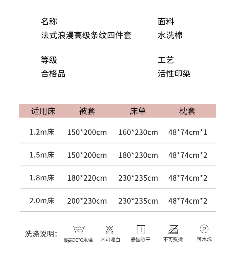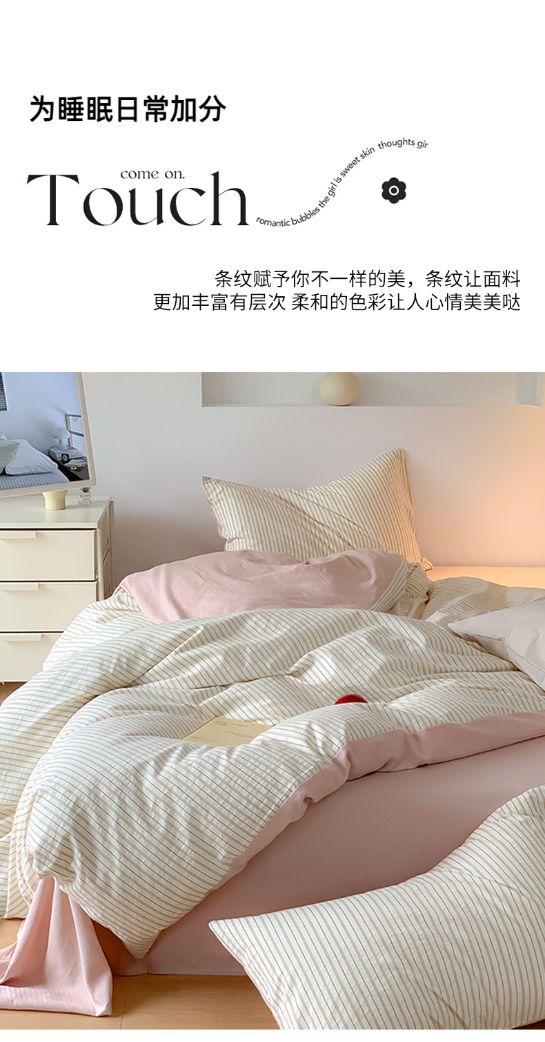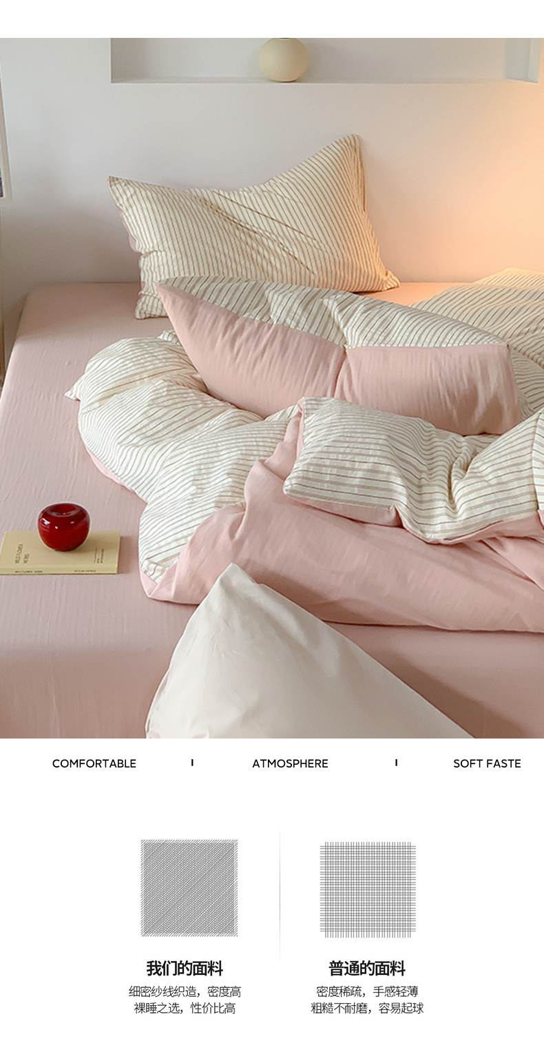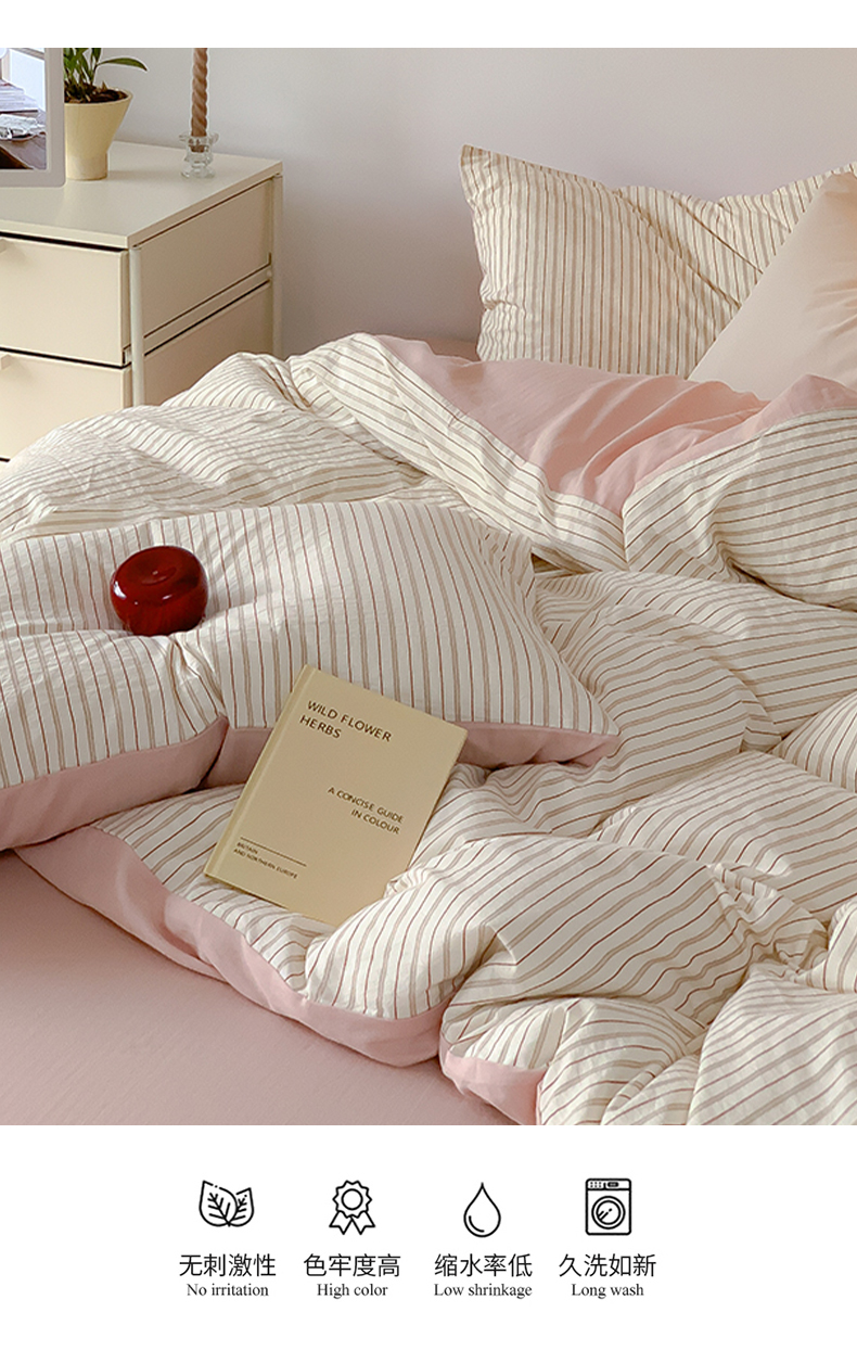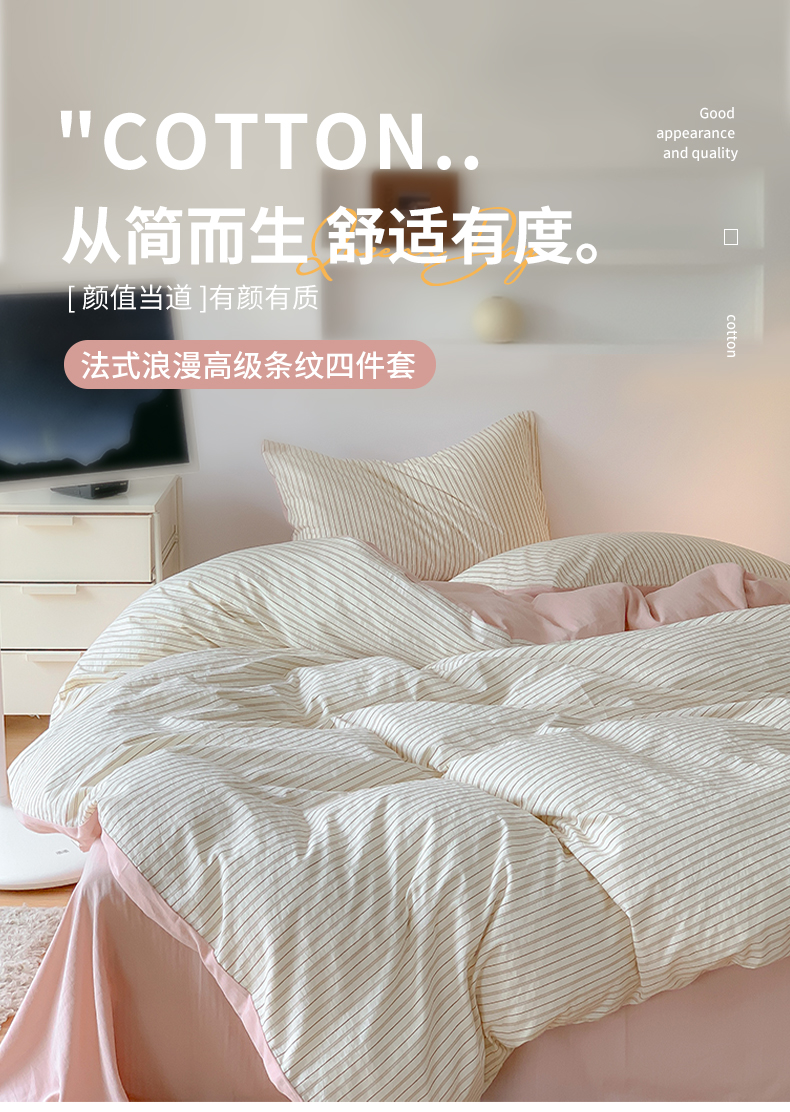 当前位置: 91家纺网 > 商品网购 > 床品套件 > 四件套 > 水洗棉四件套 > 繁花家居 2024新款法式浪漫条纹水洗棉四件套 粉色温柔