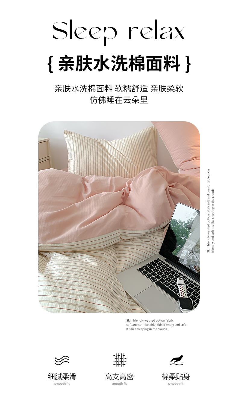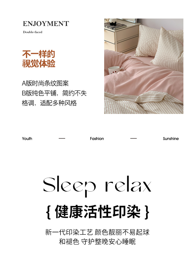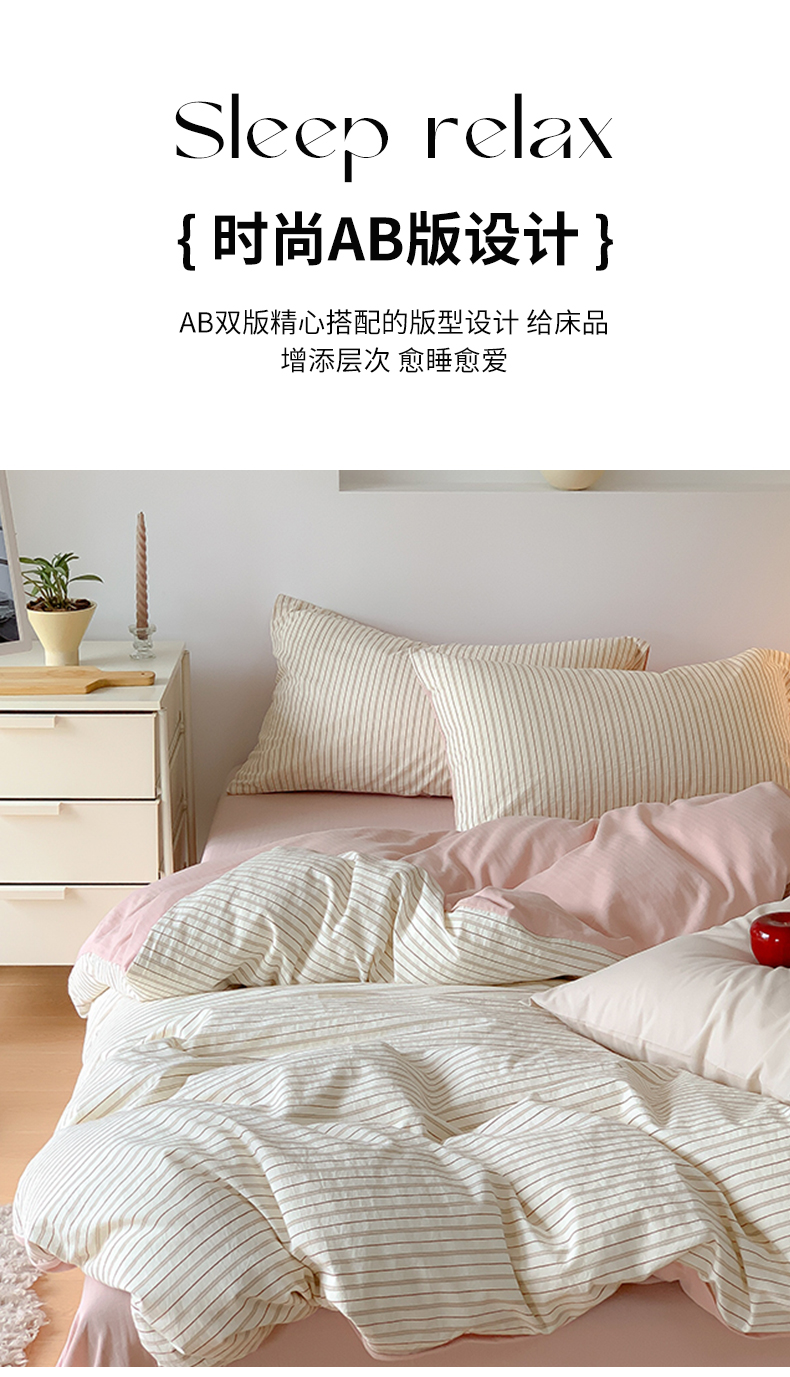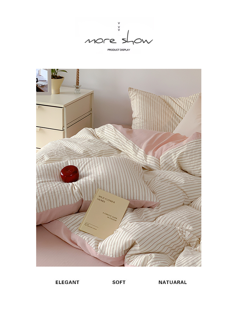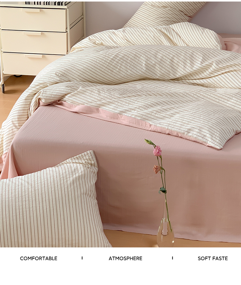 当前位置: 91家纺网 > 商品网购 > 床品套件 > 四件套 > 水洗棉四件套 > 繁花家居 2024新款法式浪漫条纹水洗棉四件套 粉色温柔