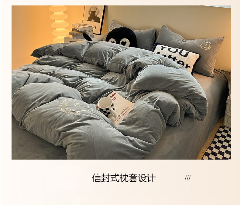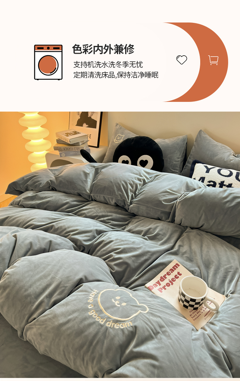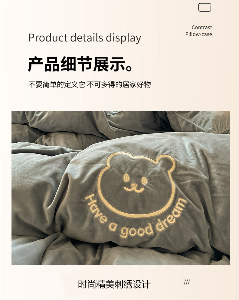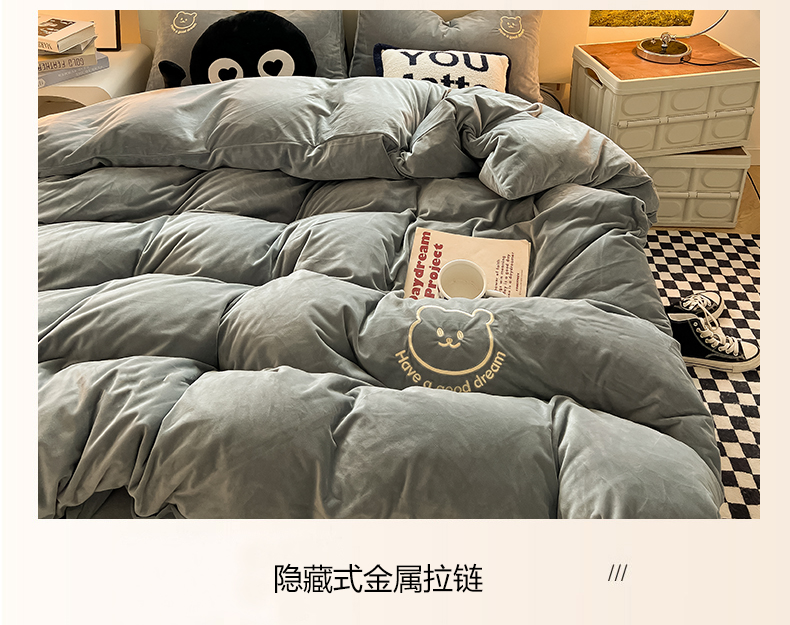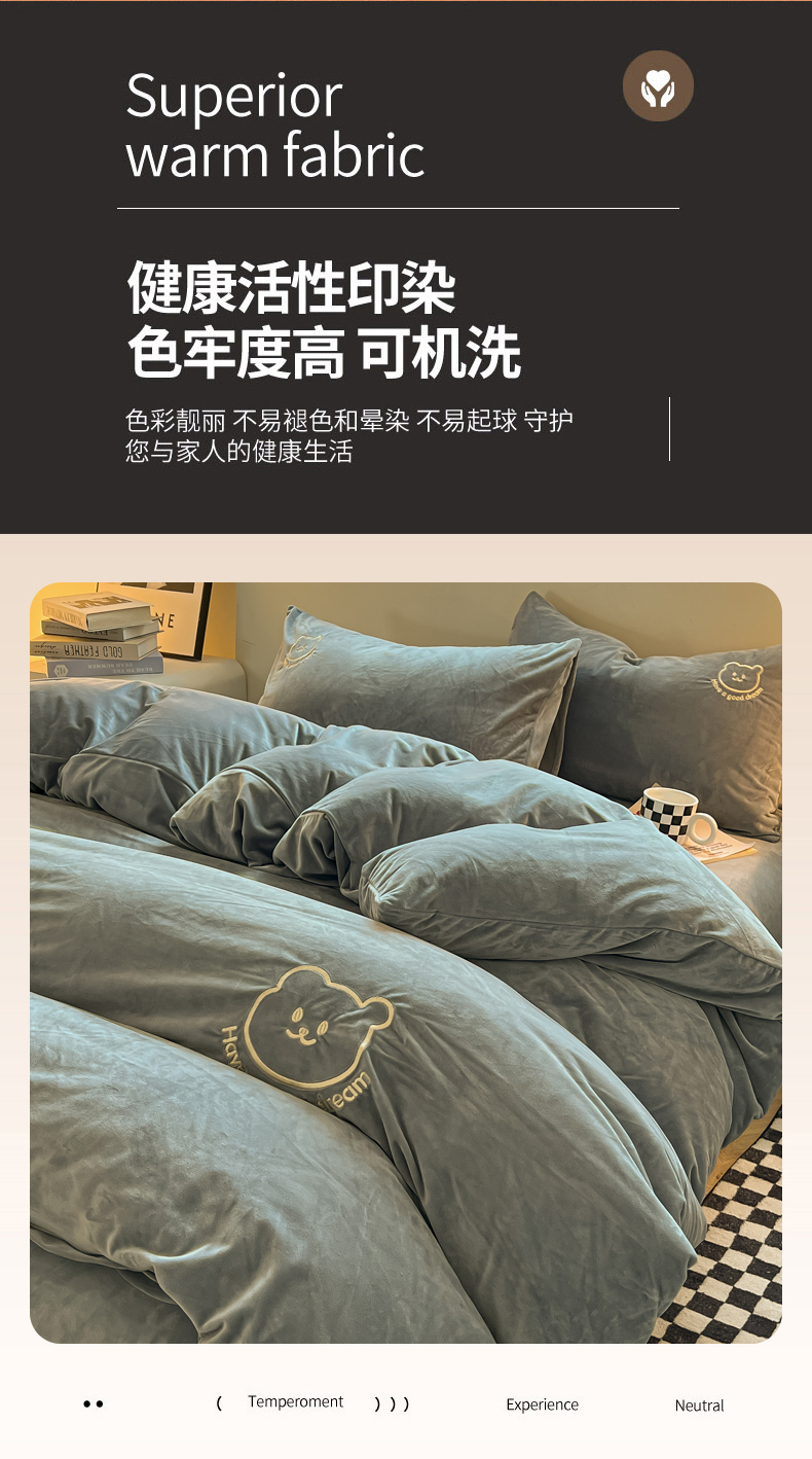 当前位置: 91家纺网 > 商品网购 > 床品套件 > 四件套 > 牛奶绒四件套 > yyds网供 【场景一】短绒小熊刺绣水晶绒四件套轻奢秋冬牛奶绒简约-小熊系列 小熊-浅灰