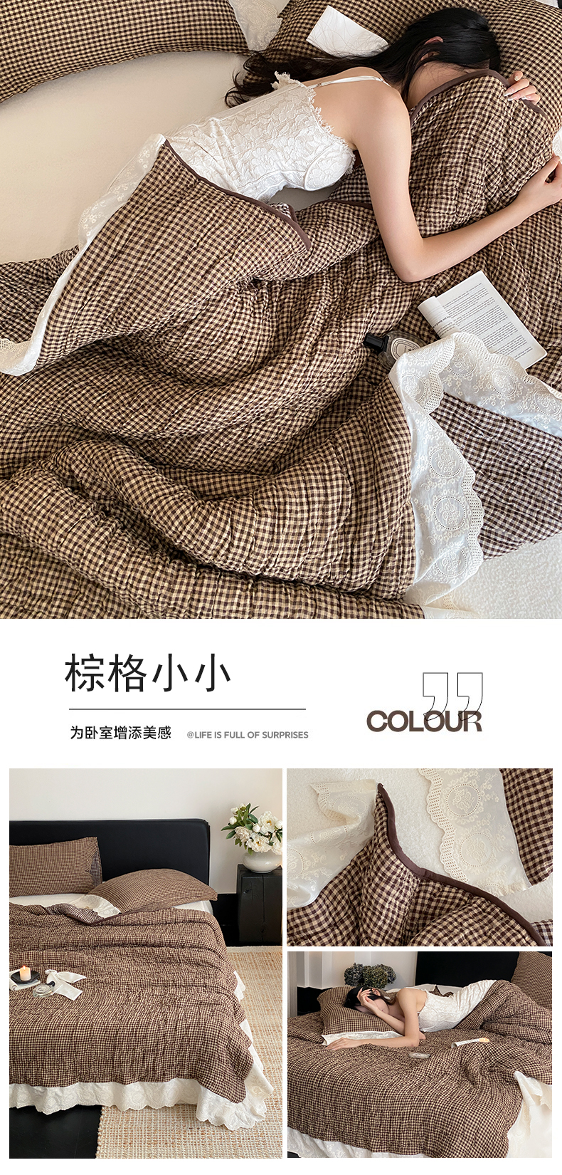 商品名称:麻依 2024新款十层单股纱美学被花边款纱布秋冬被子 棕格小小