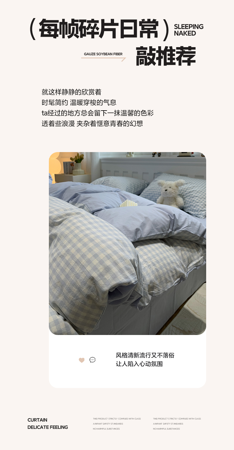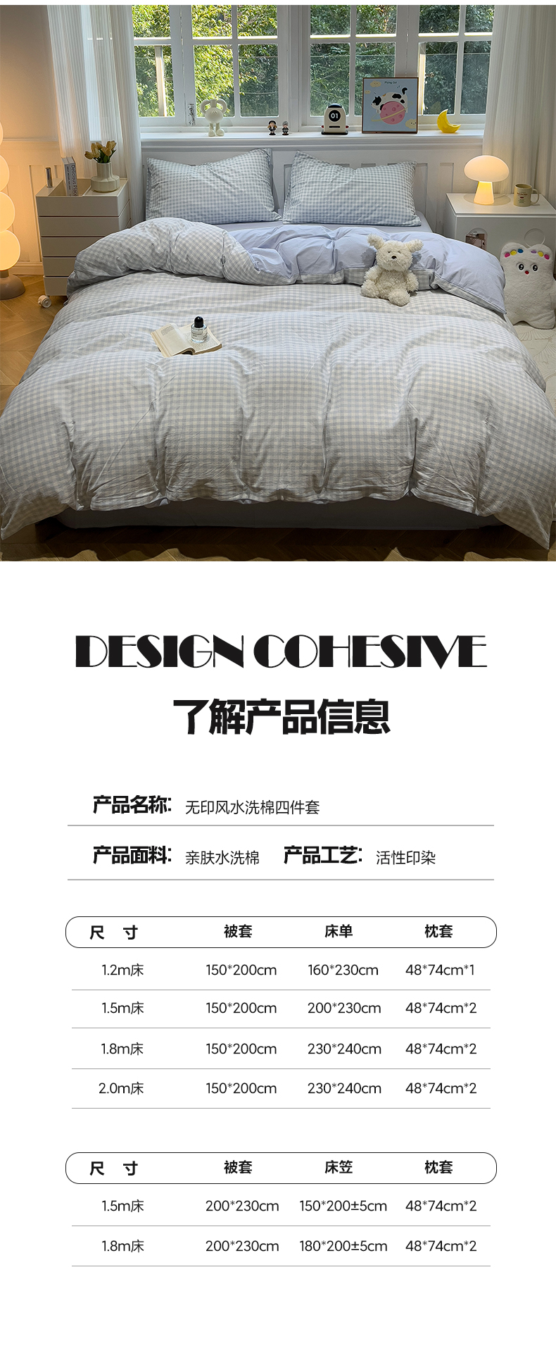 当前位置: 91家纺网 > 商品网购 > 床品套件 > 四件套 > 水洗棉四件套 > 水墨江南 2024新款水洗棉四件套 浅蓝格