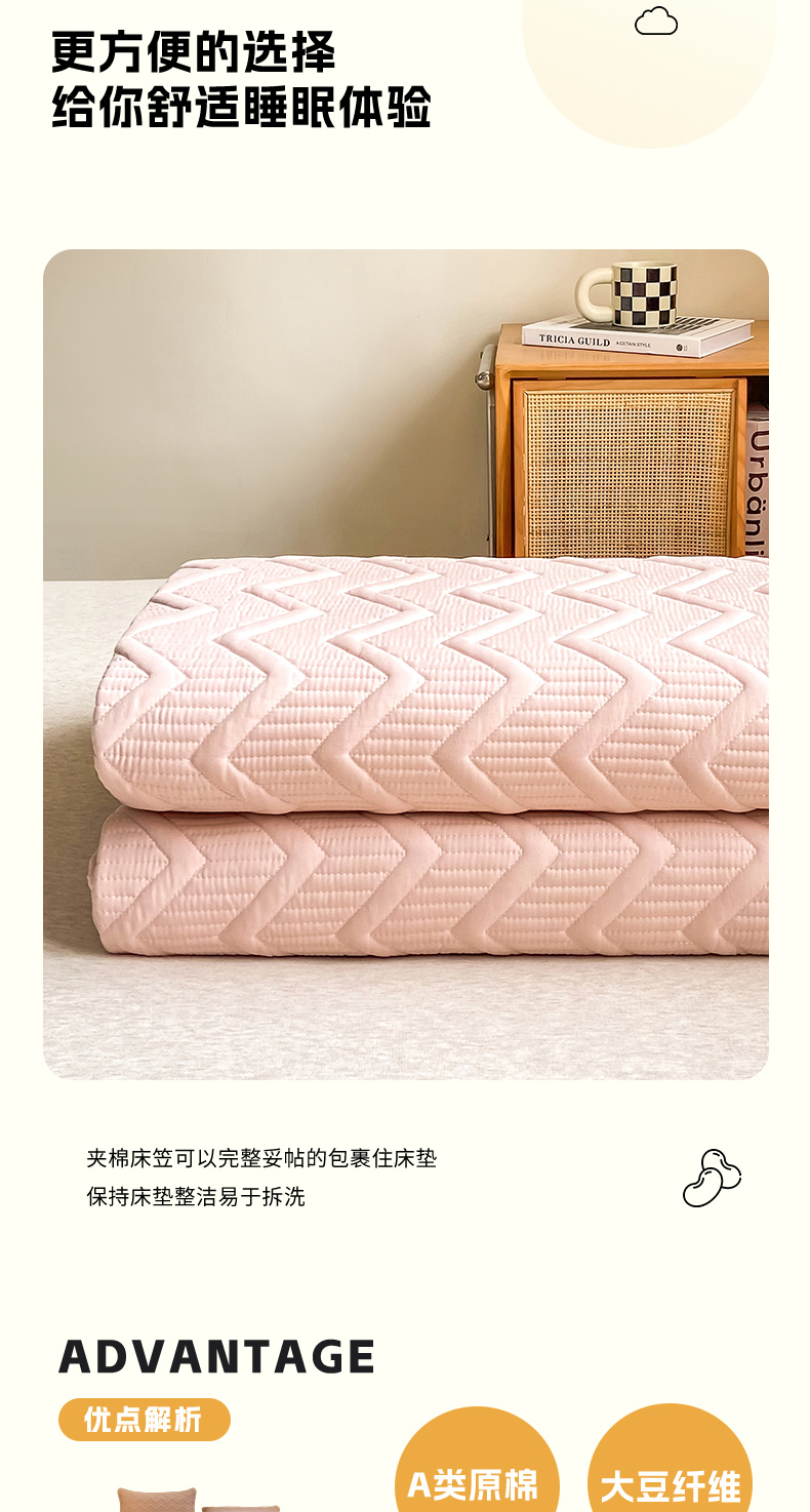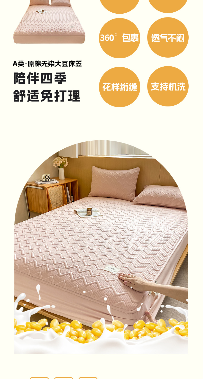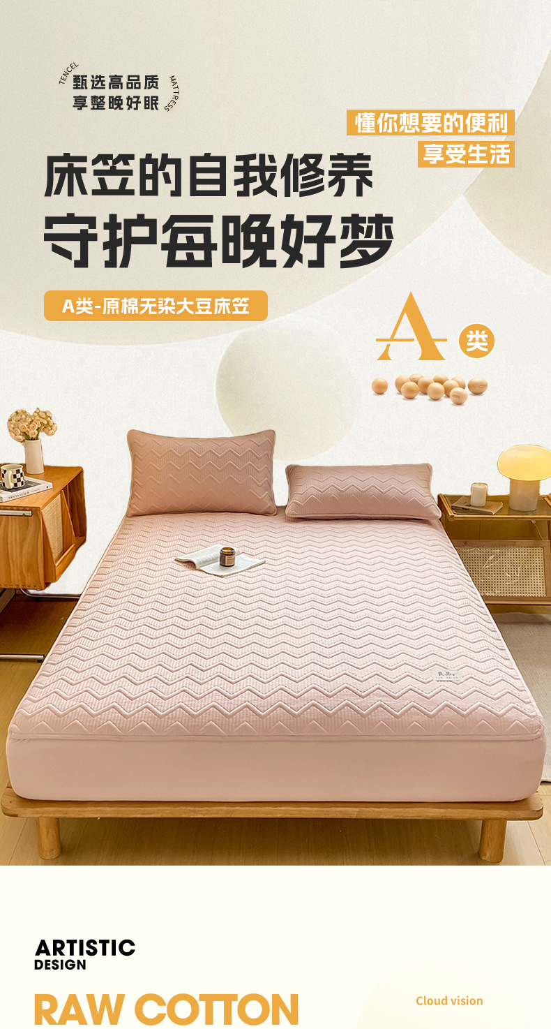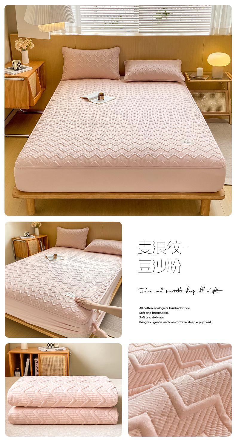 商品名称:悦织湾家纺 2025新款A类本色原棉大豆床笠 麦浪纹-豆沙粉