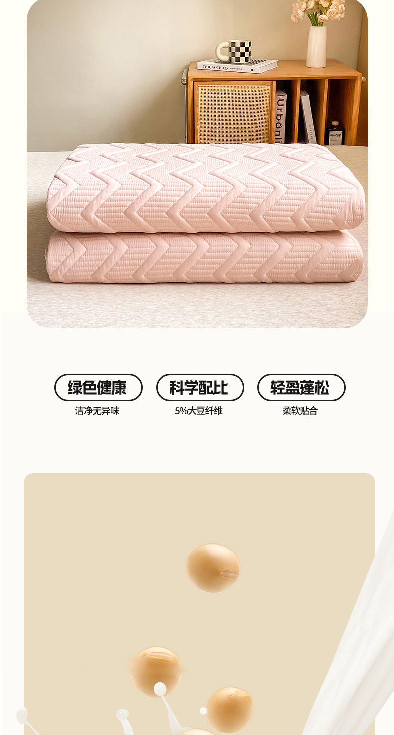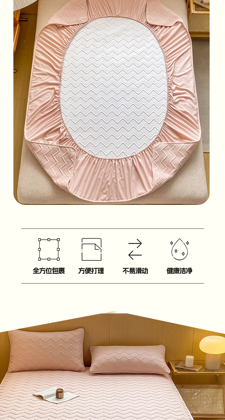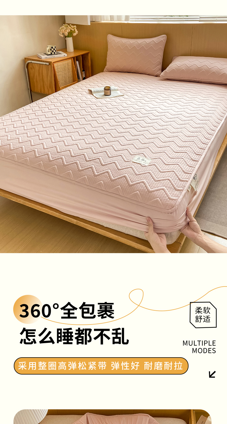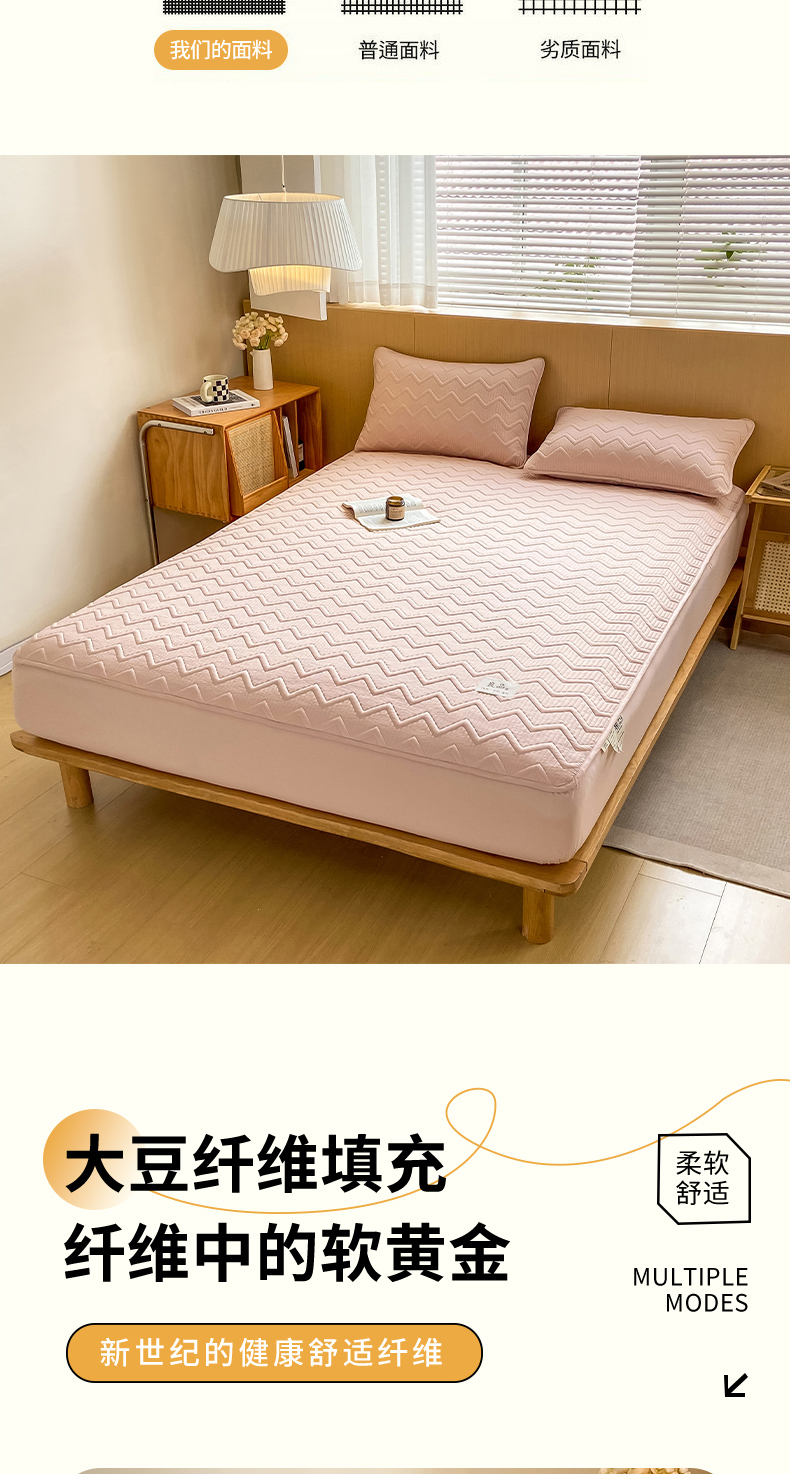 商品名称:悦织湾家纺 2025新款A类本色原棉大豆床笠 麦浪纹-豆沙粉