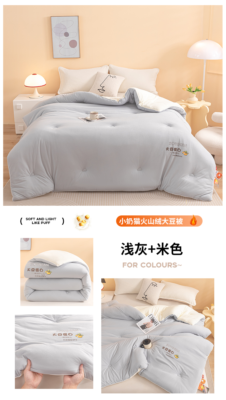 商品名称:金喜 2024爆款AB双拼奶盖被火山绒针织软软奶盖被春秋被冬被四季被 浅灰米色双拼