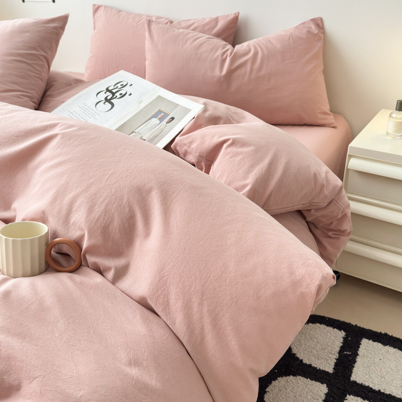 清雅福 2025新款全棉A类水洗棉单枕套 简约·藕粉