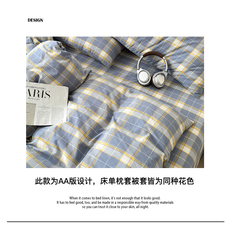 商品名称:清雅福 2024新款全棉A类水洗棉单品被套 初春格-兰