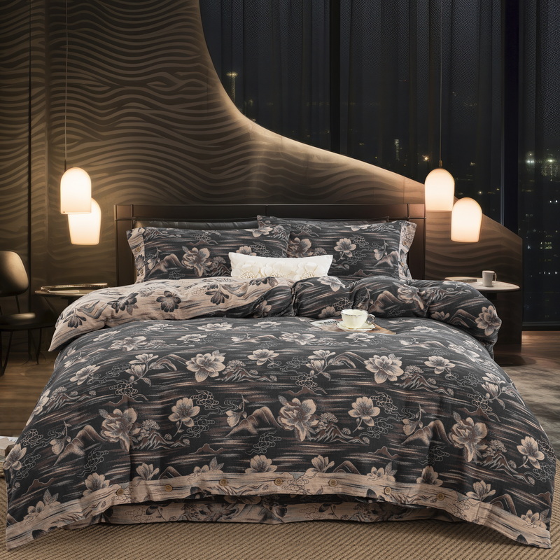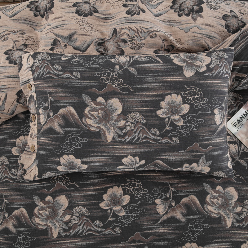 (总)鲁爱家纺供货 2025新款韩版色织提花四件套,花都-灰,花都-咖,兰亭序-豆沙,梅醉春秋-粉,梦蝶-浅咖,鸟语花香-浅咖,醉云间-绿