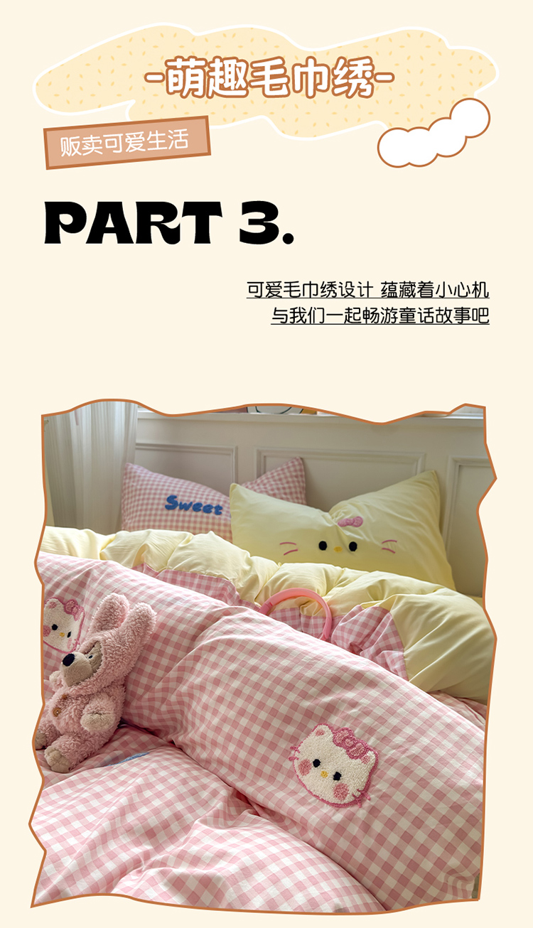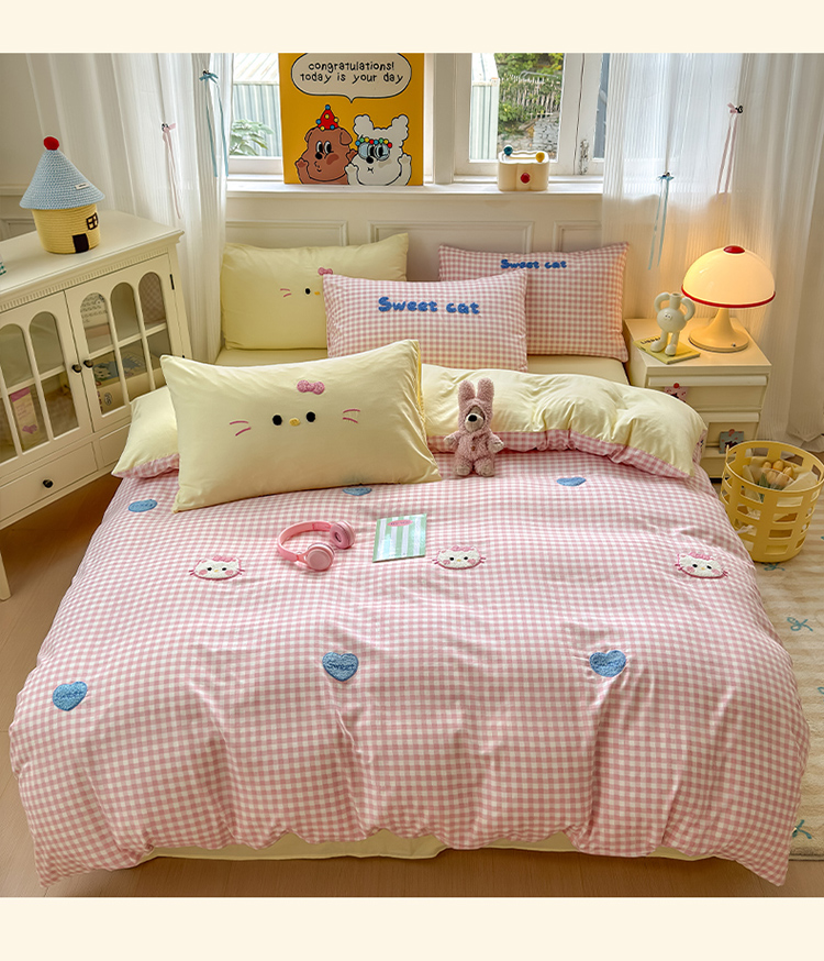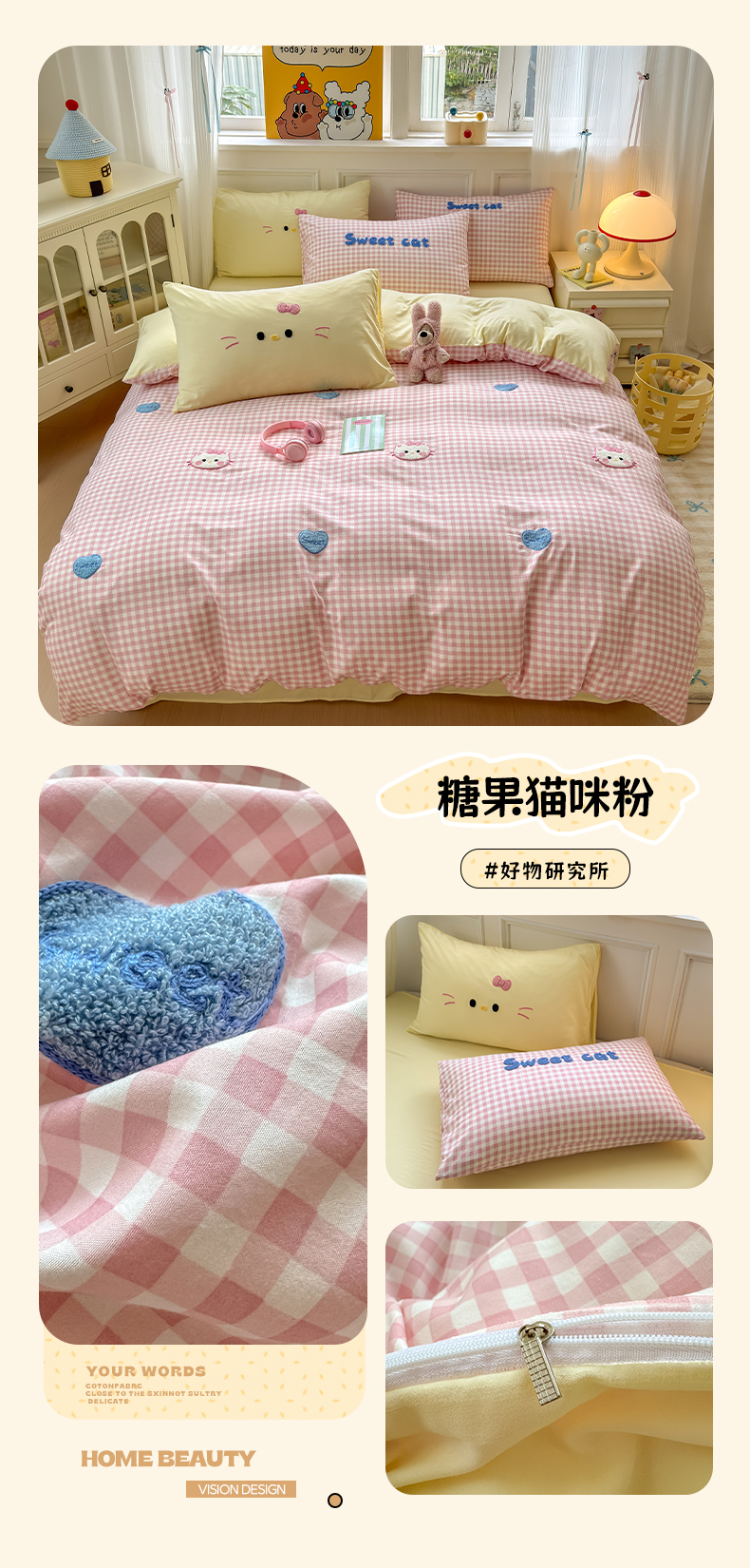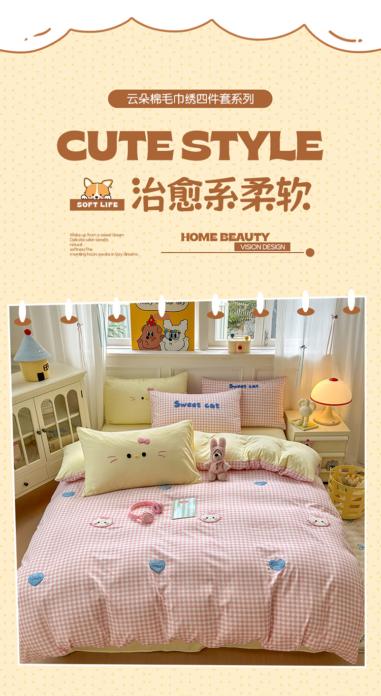 当前位置: 91家纺网 > 商品网购 > 床品套件 > 四件套 > 其它四件套 > 罗亿家纺 2025新款韩版糯糯棉(110克)毛巾绣四件套-场景三(提供买家秀) 糖果猫咪粉