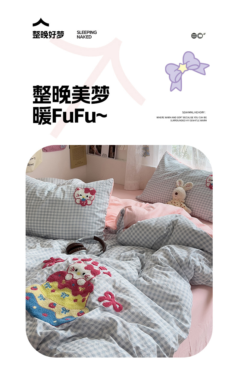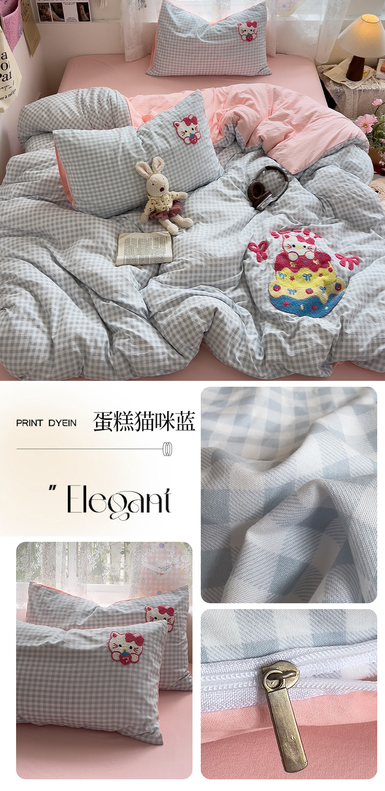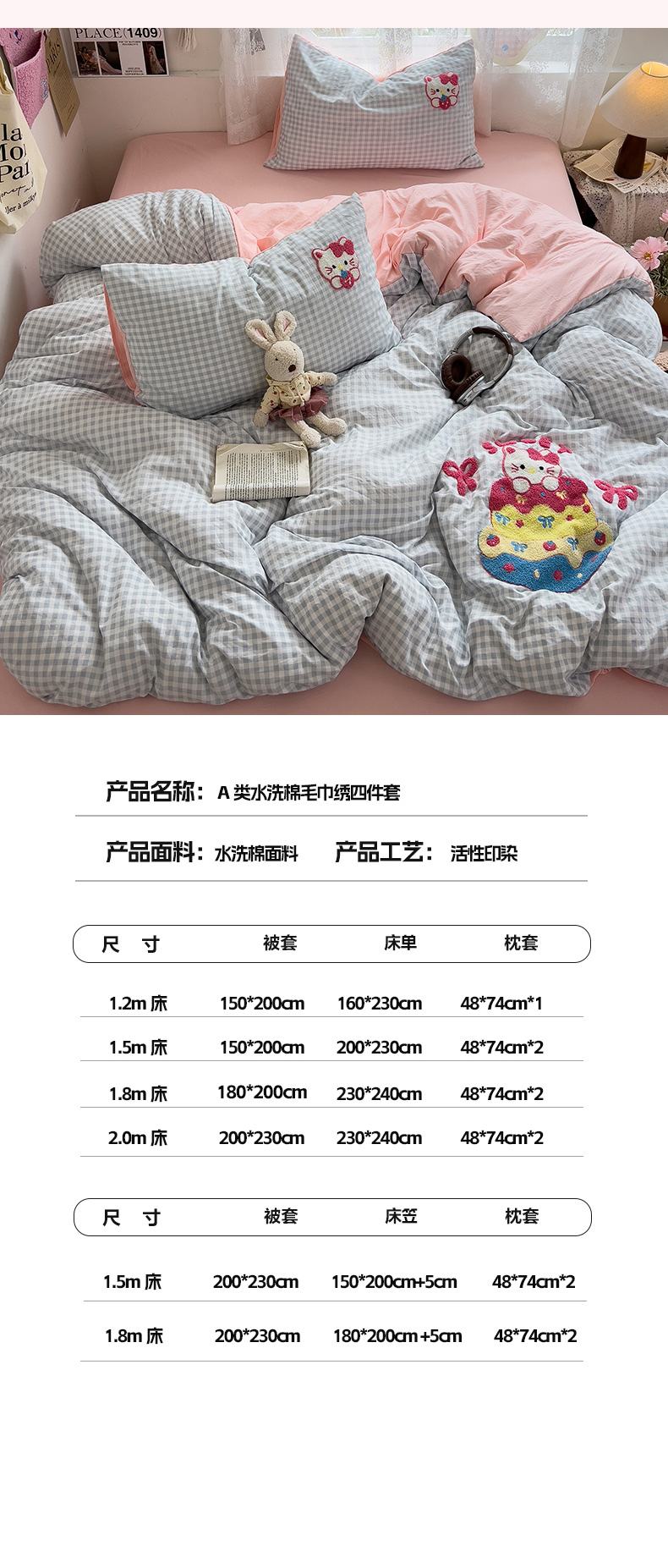 当前位置: 91家纺网 > 商品网购 > 床品套件 > 四件套 > 水洗棉四件套 > 2024新款水洗棉毛巾绣四件套系列 蛋糕猫咪蓝