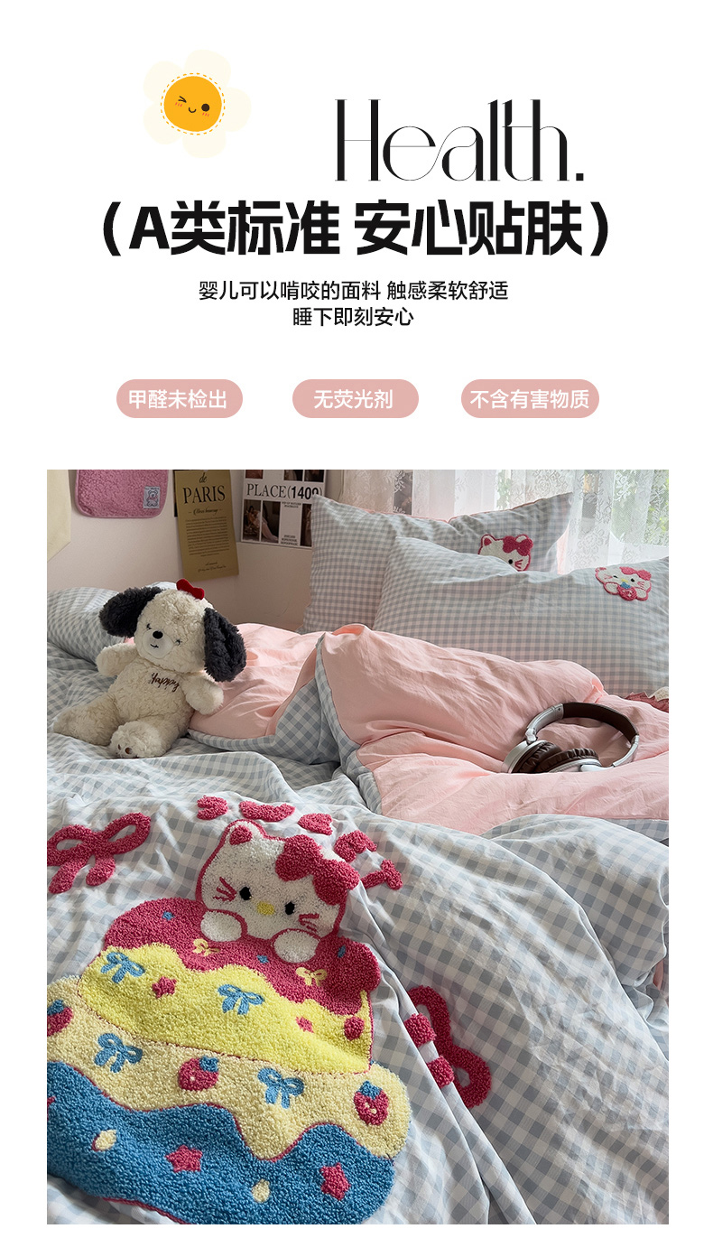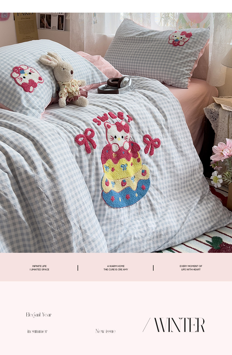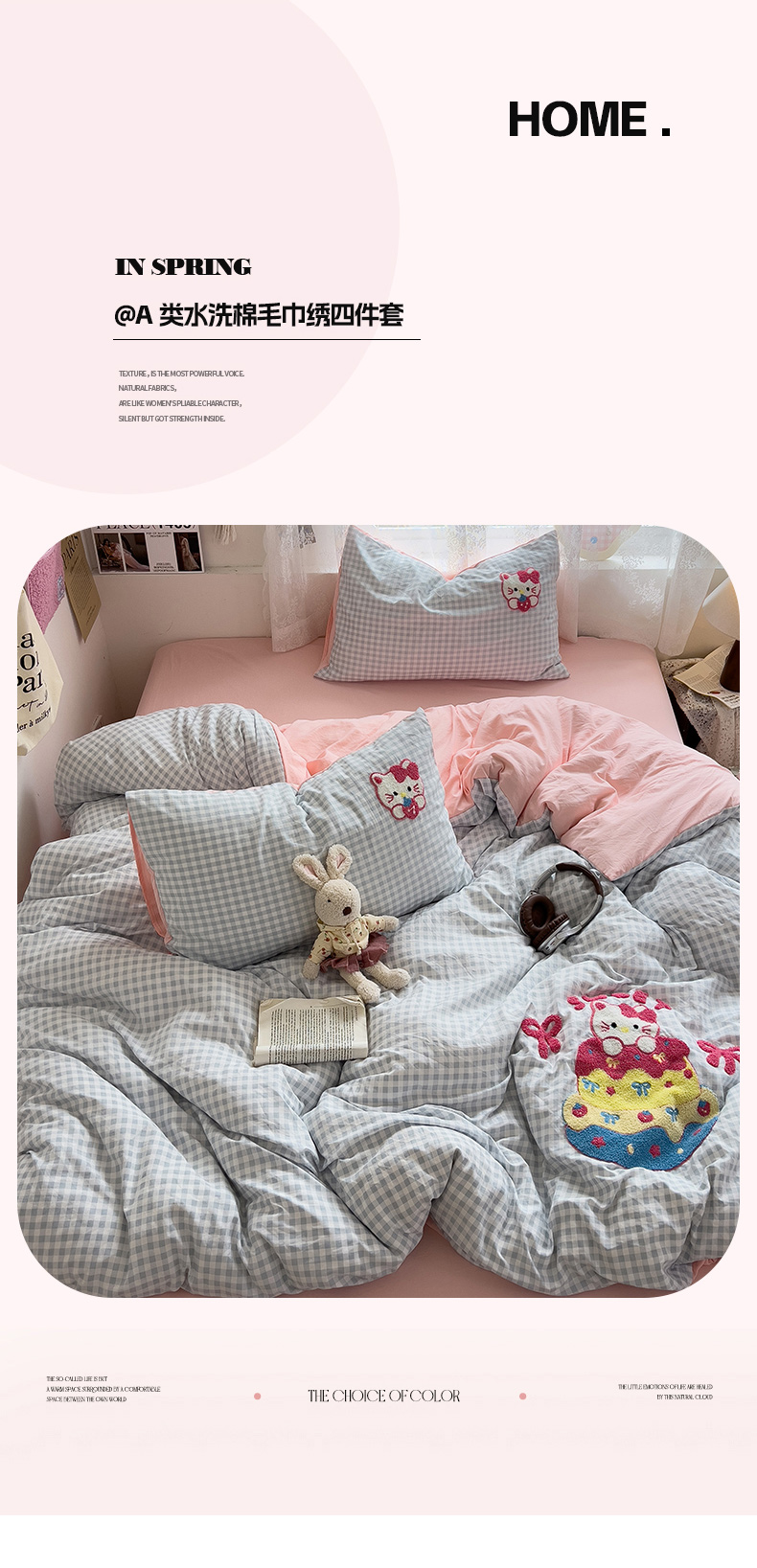 当前位置: 91家纺网 > 商品网购 > 床品套件 > 四件套 > 水洗棉四件套 > 2024新款水洗棉毛巾绣四件套系列 蛋糕猫咪蓝