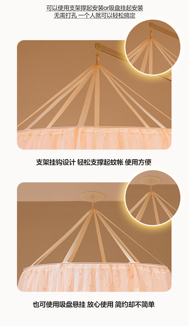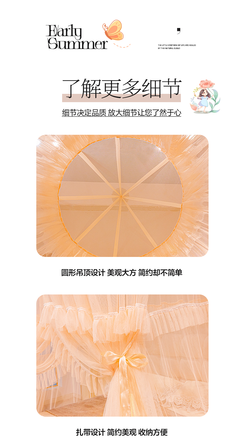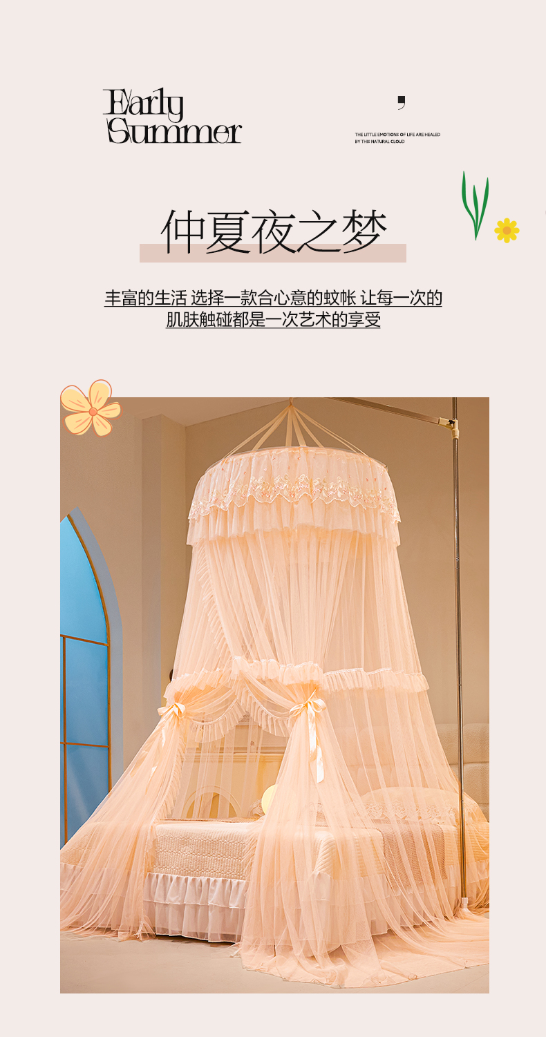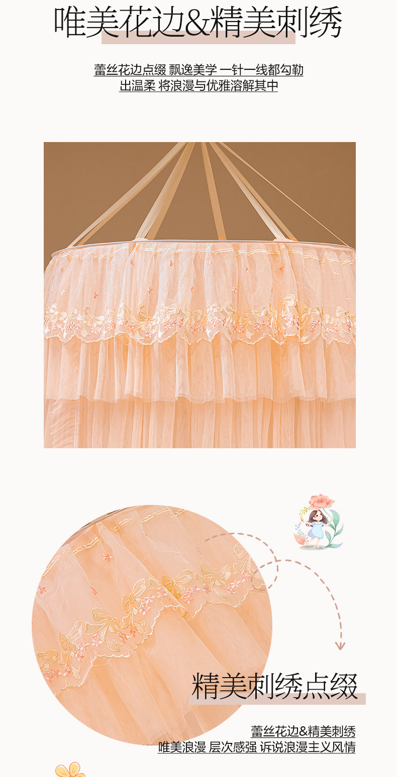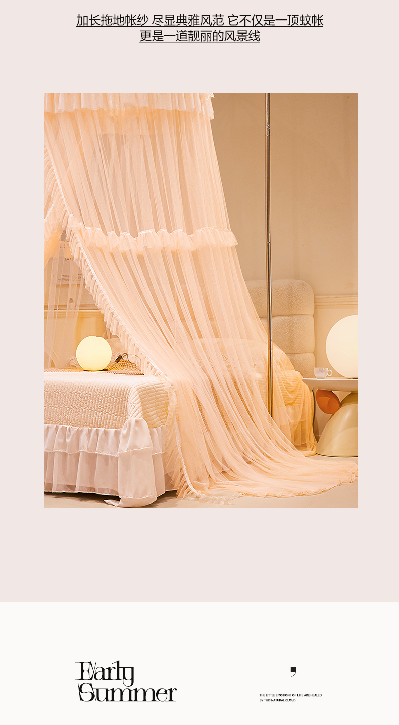 商品名称:2025新款公主圆顶法式花边吊顶蚊帐--爱丽丝 爱丽丝玉色