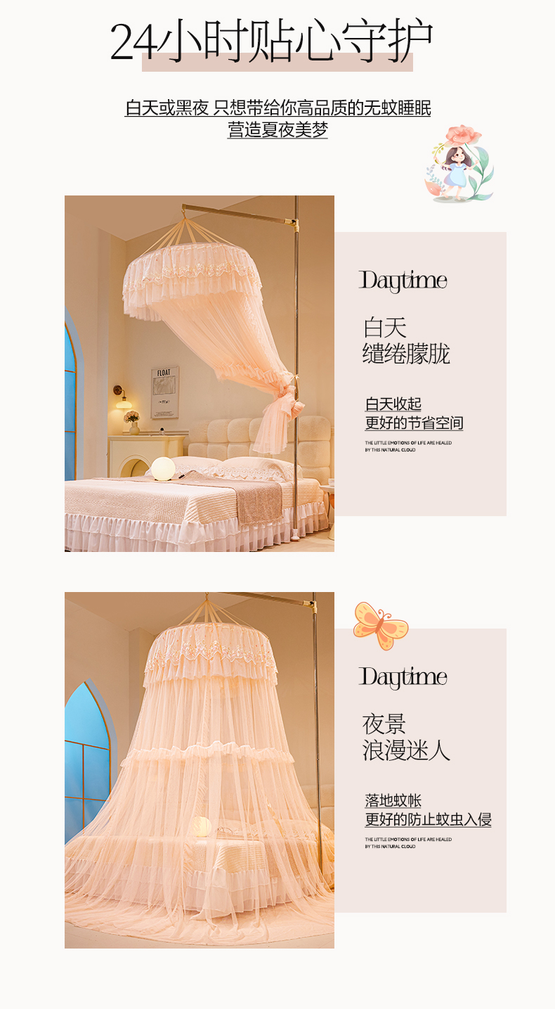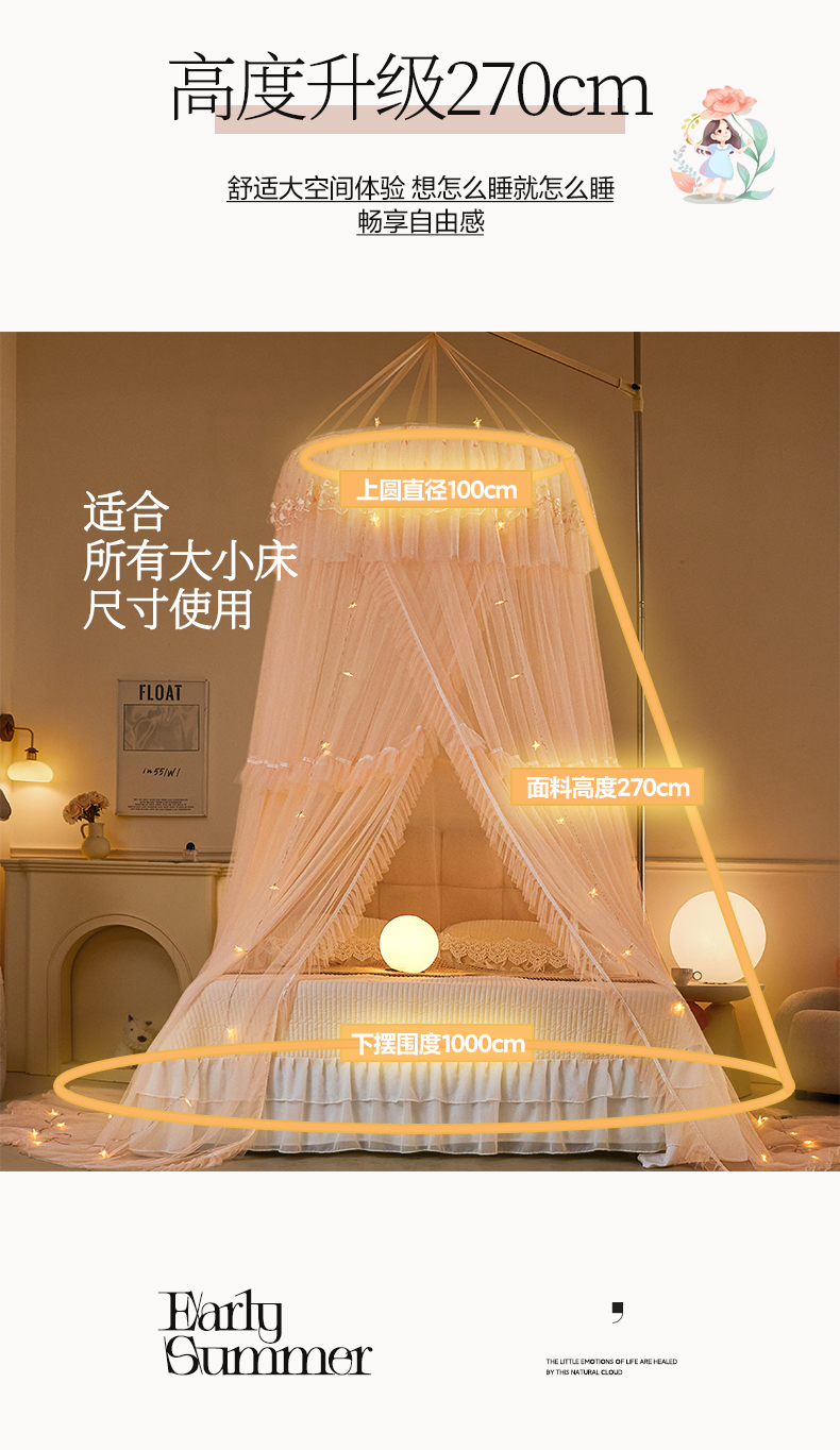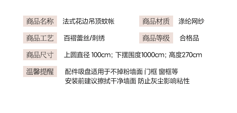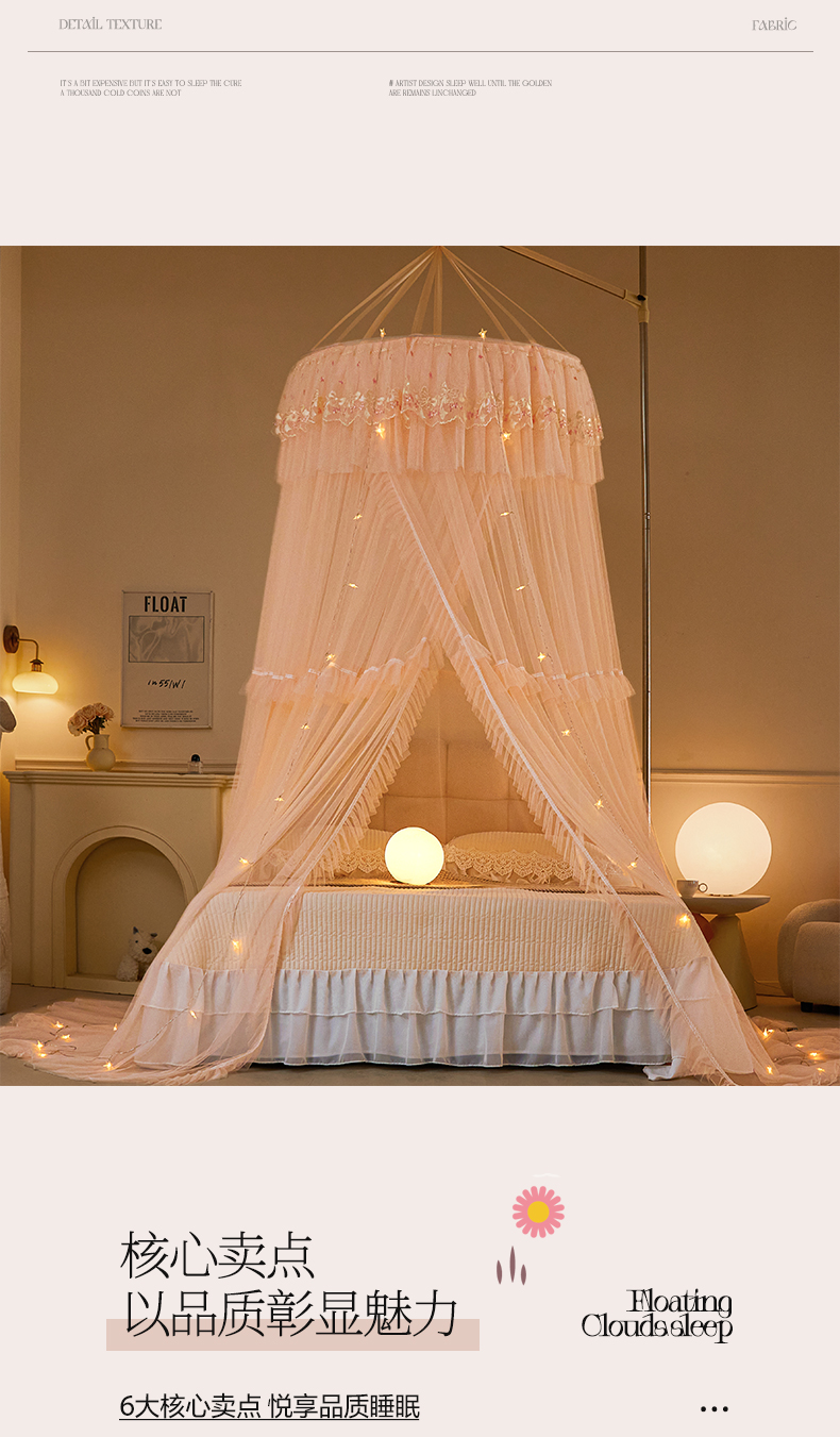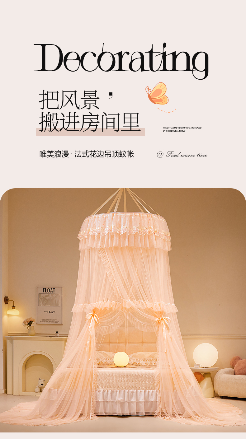 商品名称:2025新款公主圆顶法式花边吊顶蚊帐--爱丽丝 爱丽丝玉色