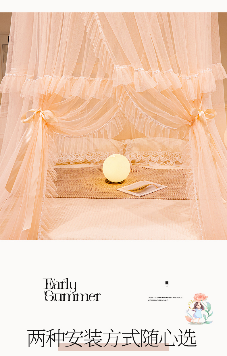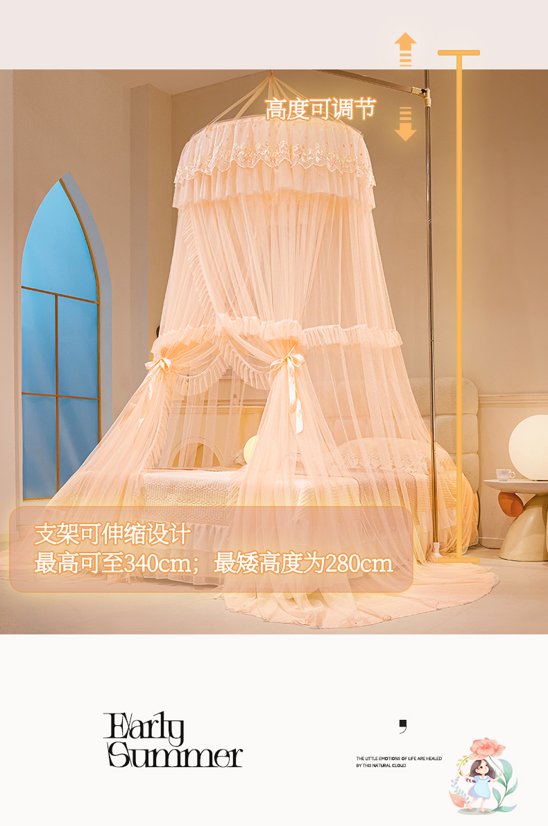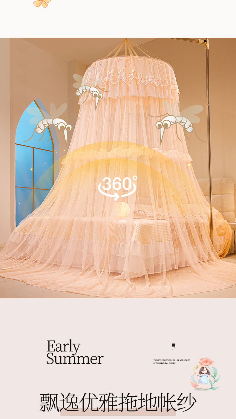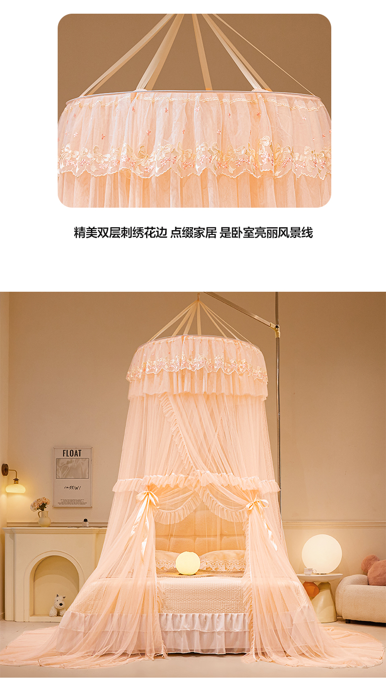 2025新款公主圆顶法式花边吊顶蚊帐--爱丽丝 爱丽丝玉色