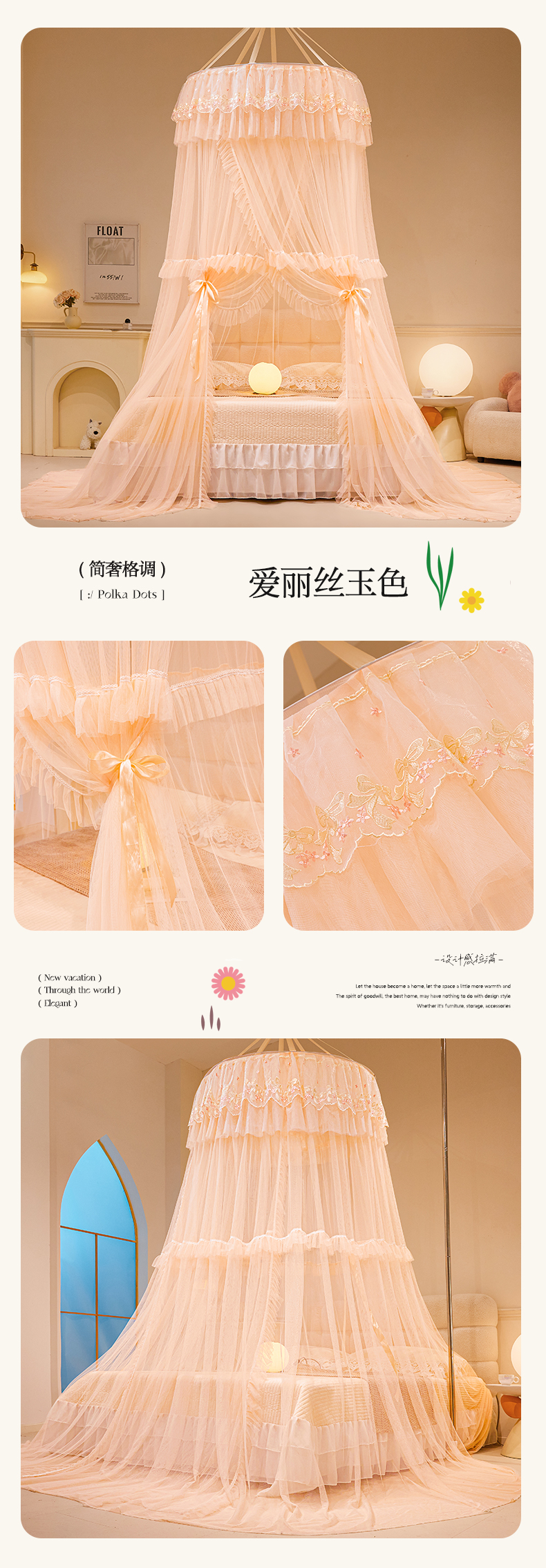 (总)2025新款公主圆顶法式花边吊顶蚊帐--爱丽丝,爱丽丝绿色,爱丽丝白,爱丽丝蓝灰,爱丽丝杏色,爱丽丝玉色