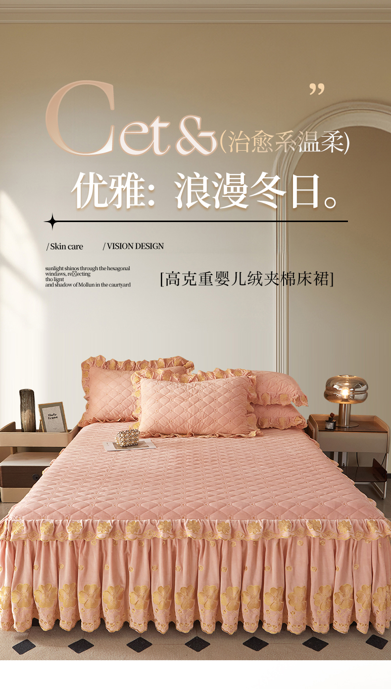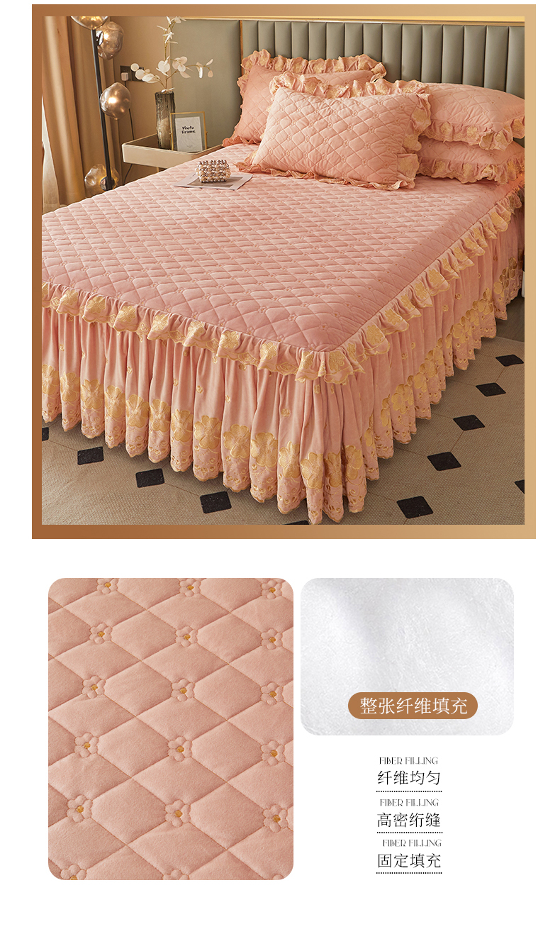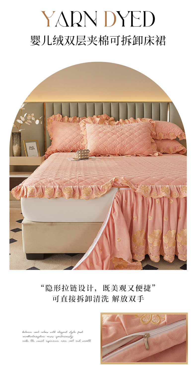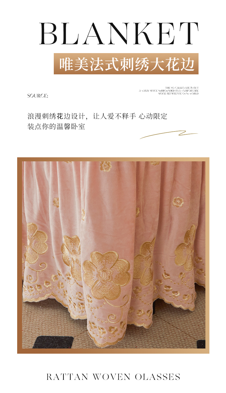 • 91家纺网 家纺一手货源 找家纺 罗艺轩 2025新款婴儿绒双层夹棉可拆卸床裙-花语 花语-梦幻玉