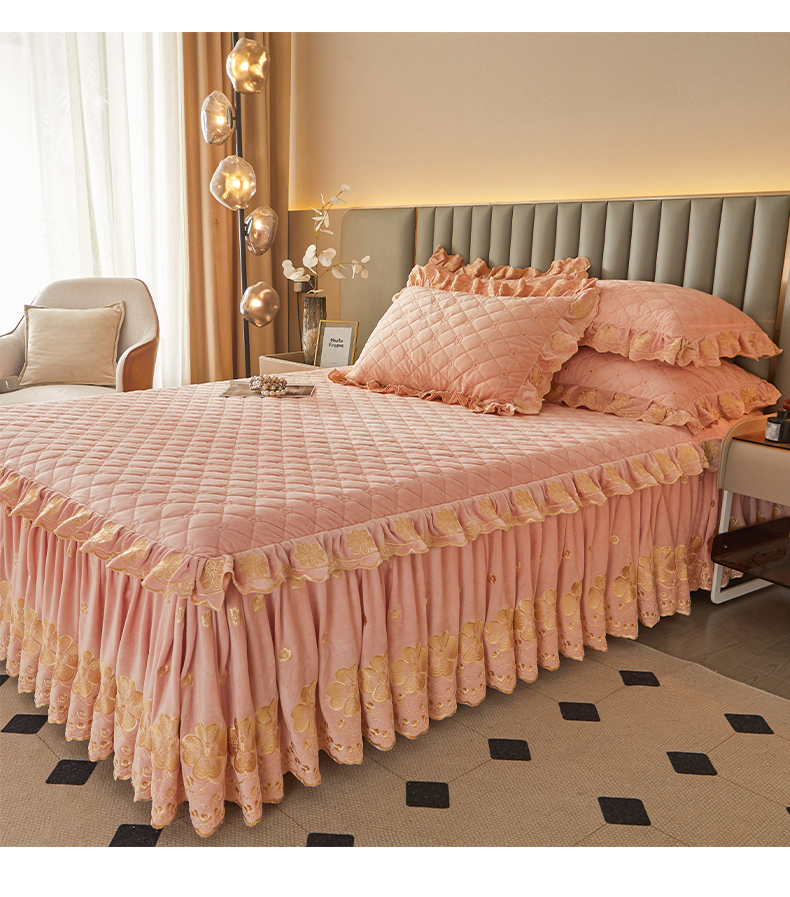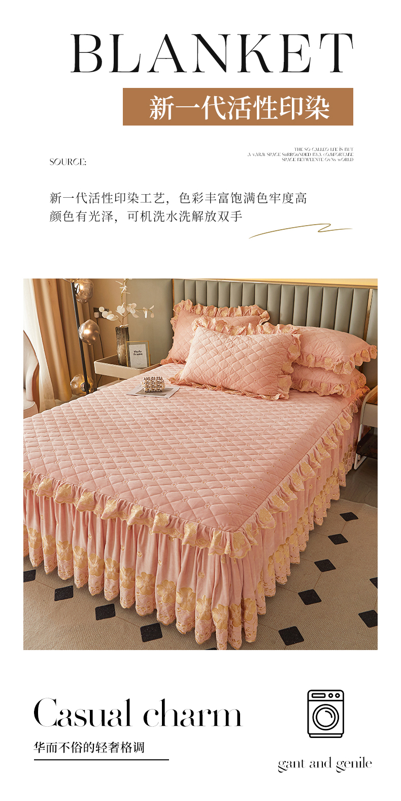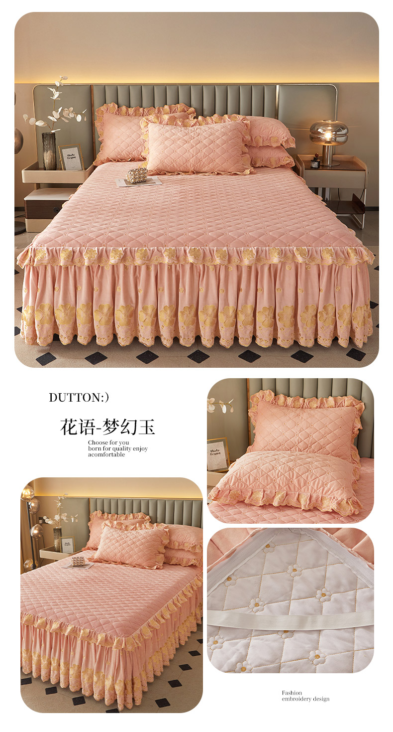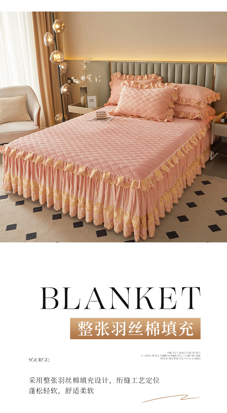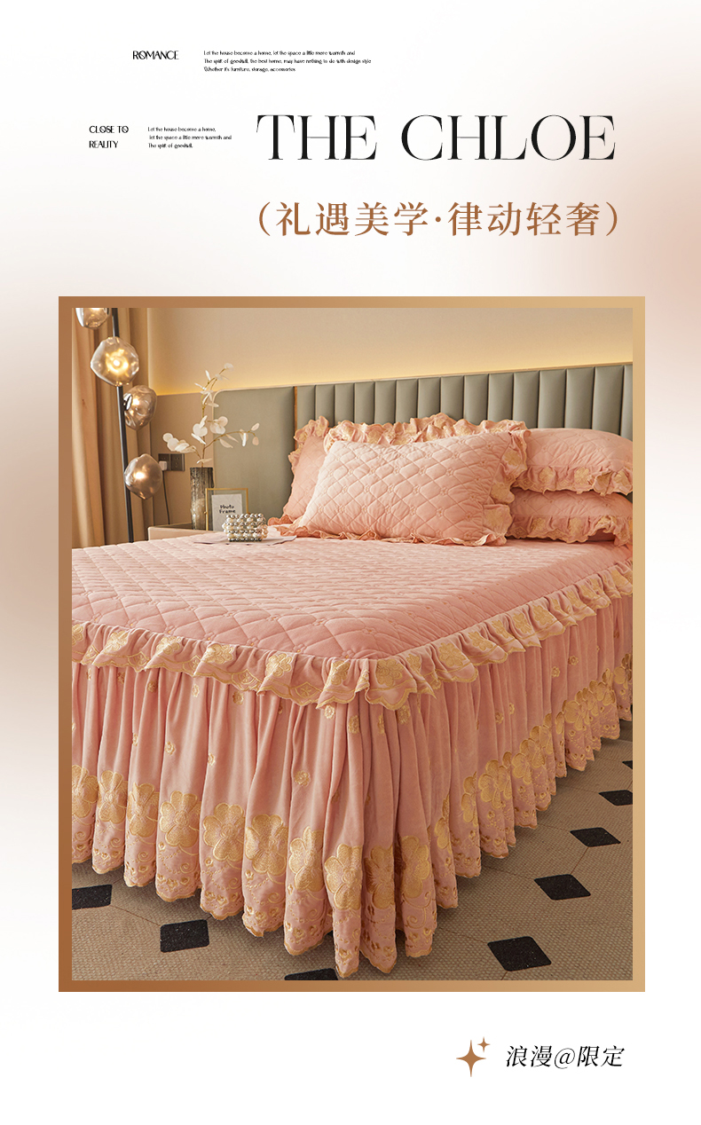 • 91家纺网 家纺一手货源 找家纺 罗艺轩 2025新款婴儿绒双层夹棉可拆卸床裙-花语 花语-梦幻玉
