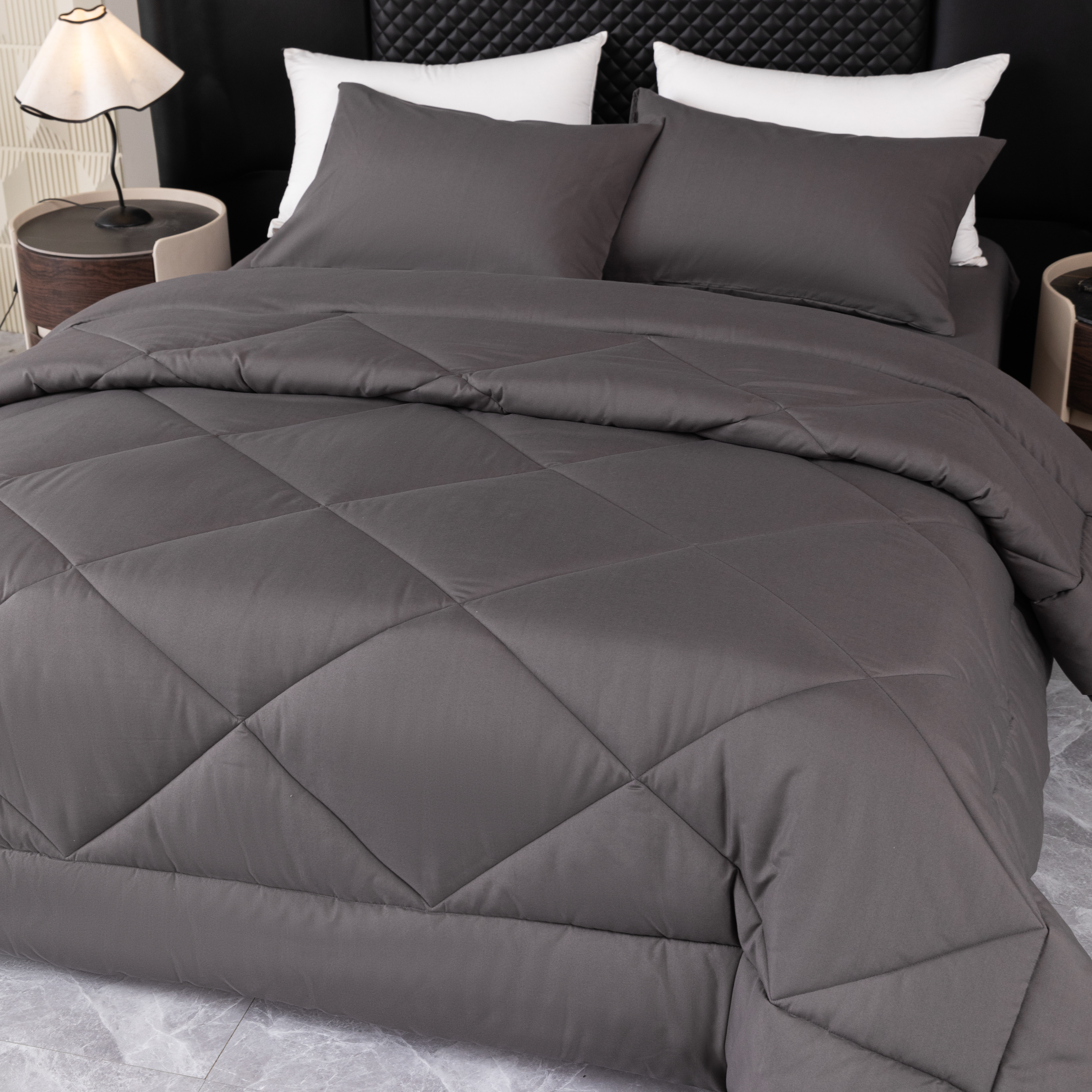 (总)2025新款美国跨境被芯四季被子三件套,藏青,粉色,黑色,灰色,米色