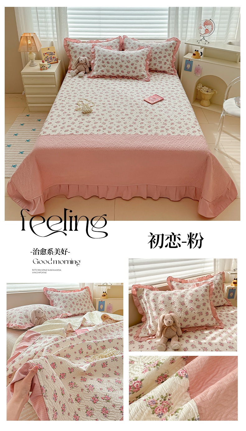 (总)2025新款木棉夹棉花边拼接床盖系列