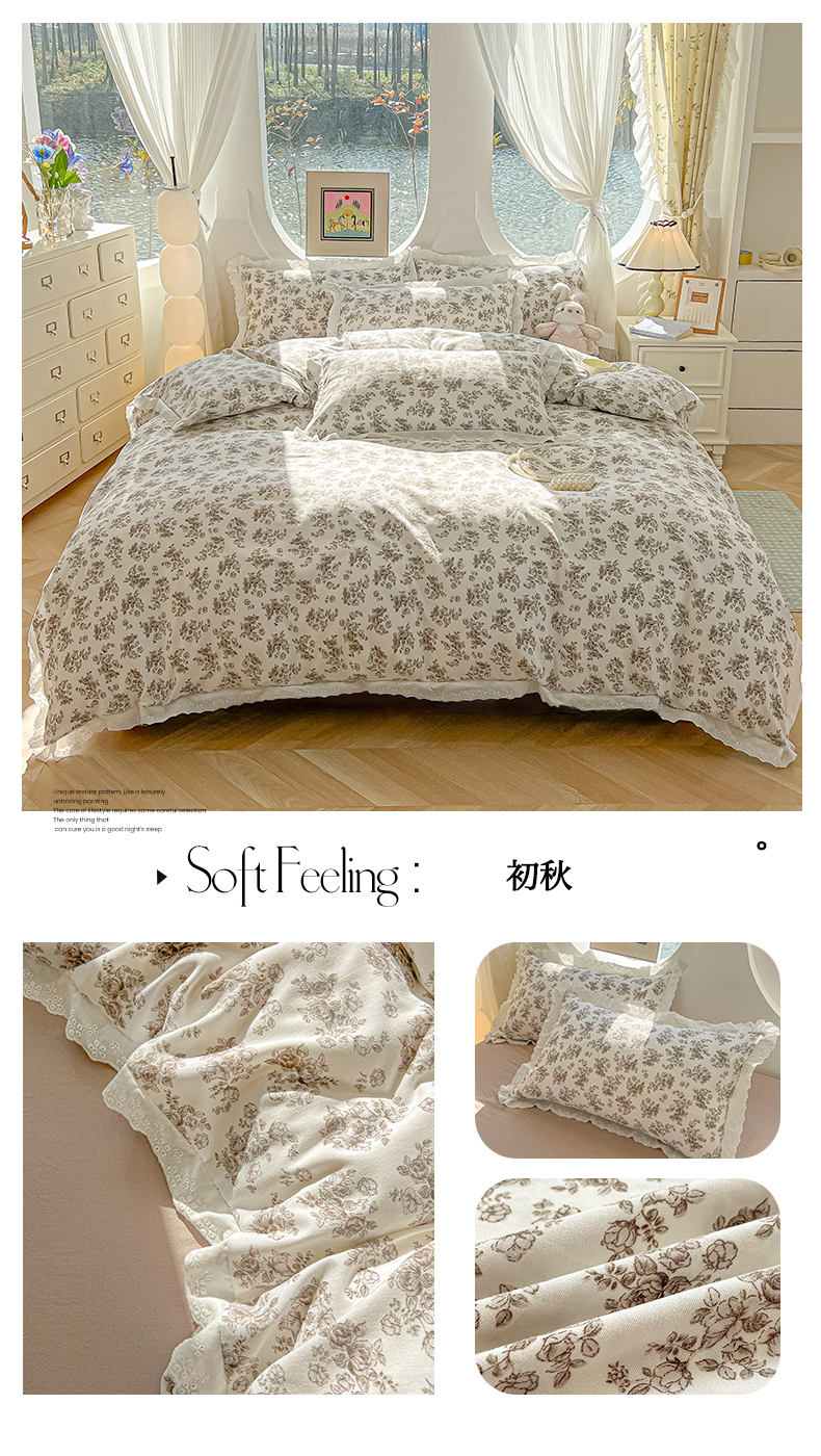 当前位置: 91家纺网 > 商品网购 > 床品套件 > 四件套 > 双层纱四件套 > 多乐家纺 2025新款A类有氧针织双层纱水洗棉四件套(提供买家秀) 初秋