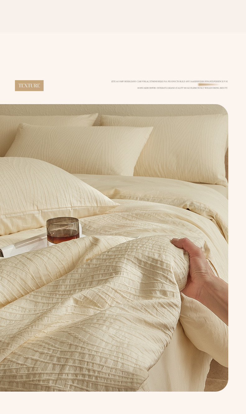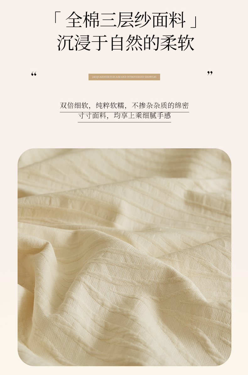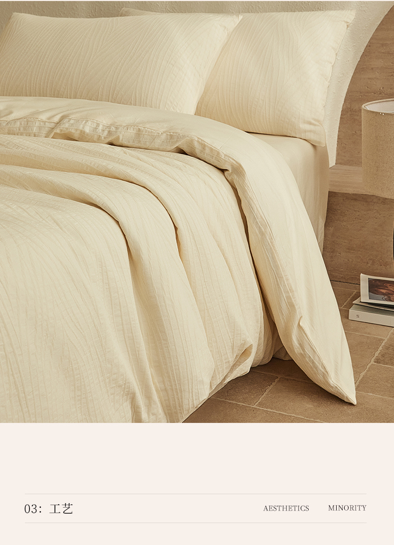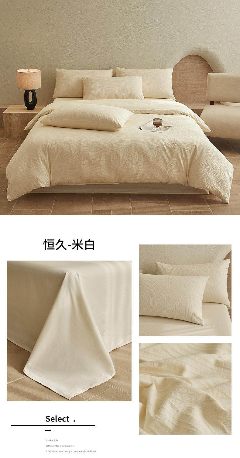 当前位置: 91家纺网 > 商品网购 > 床品套件 > 四件套 > 全棉普通四件套 > 2025新款全棉三层纱浮雕大提花四件套系列 恒久-米白