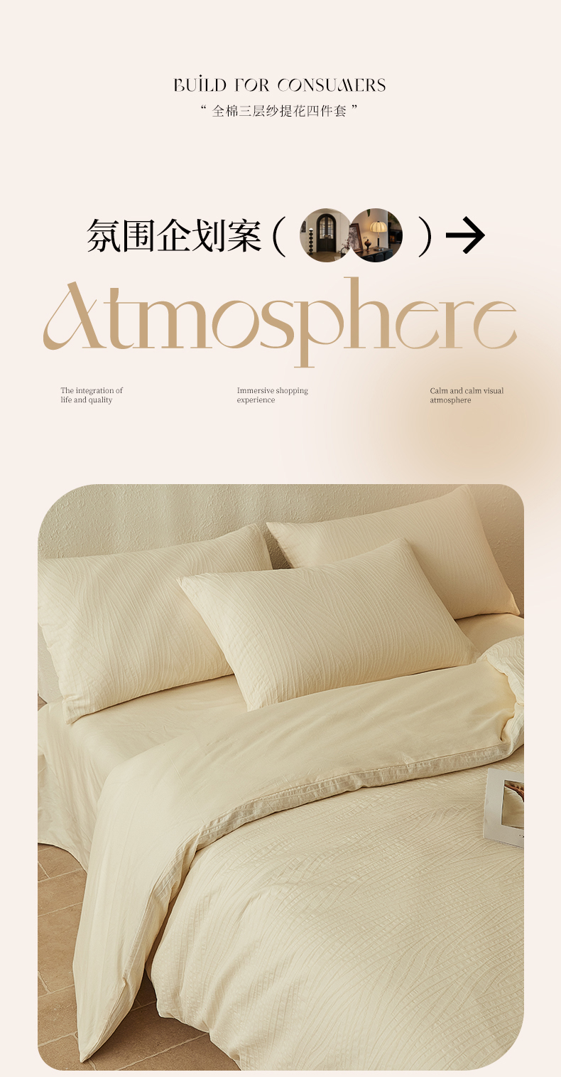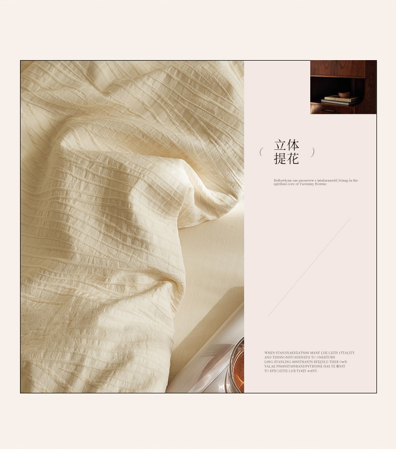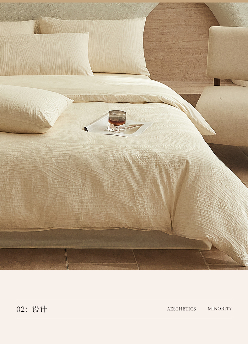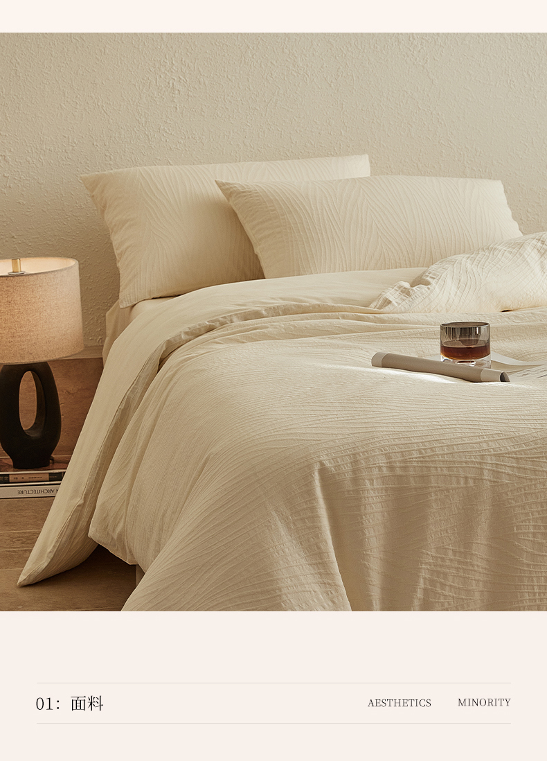 当前位置: 91家纺网 > 商品网购 > 床品套件 > 四件套 > 全棉普通四件套 > 2025新款全棉三层纱浮雕大提花四件套系列 恒久-米白