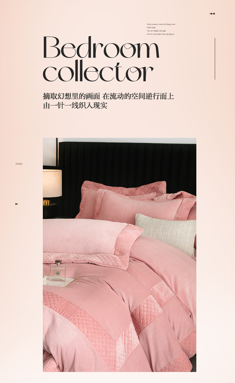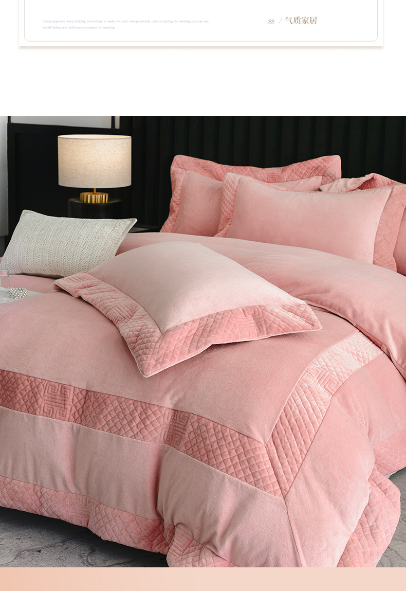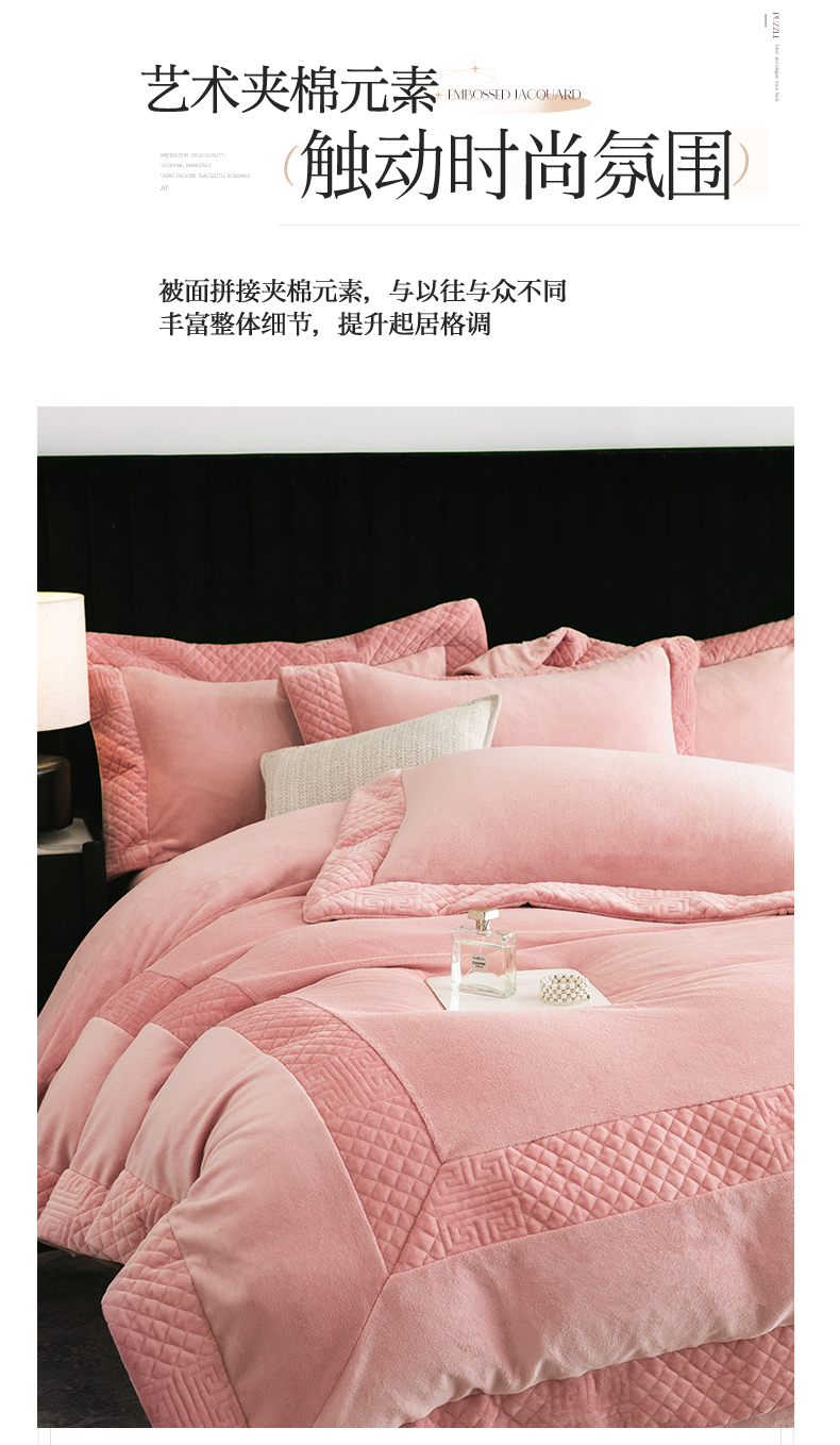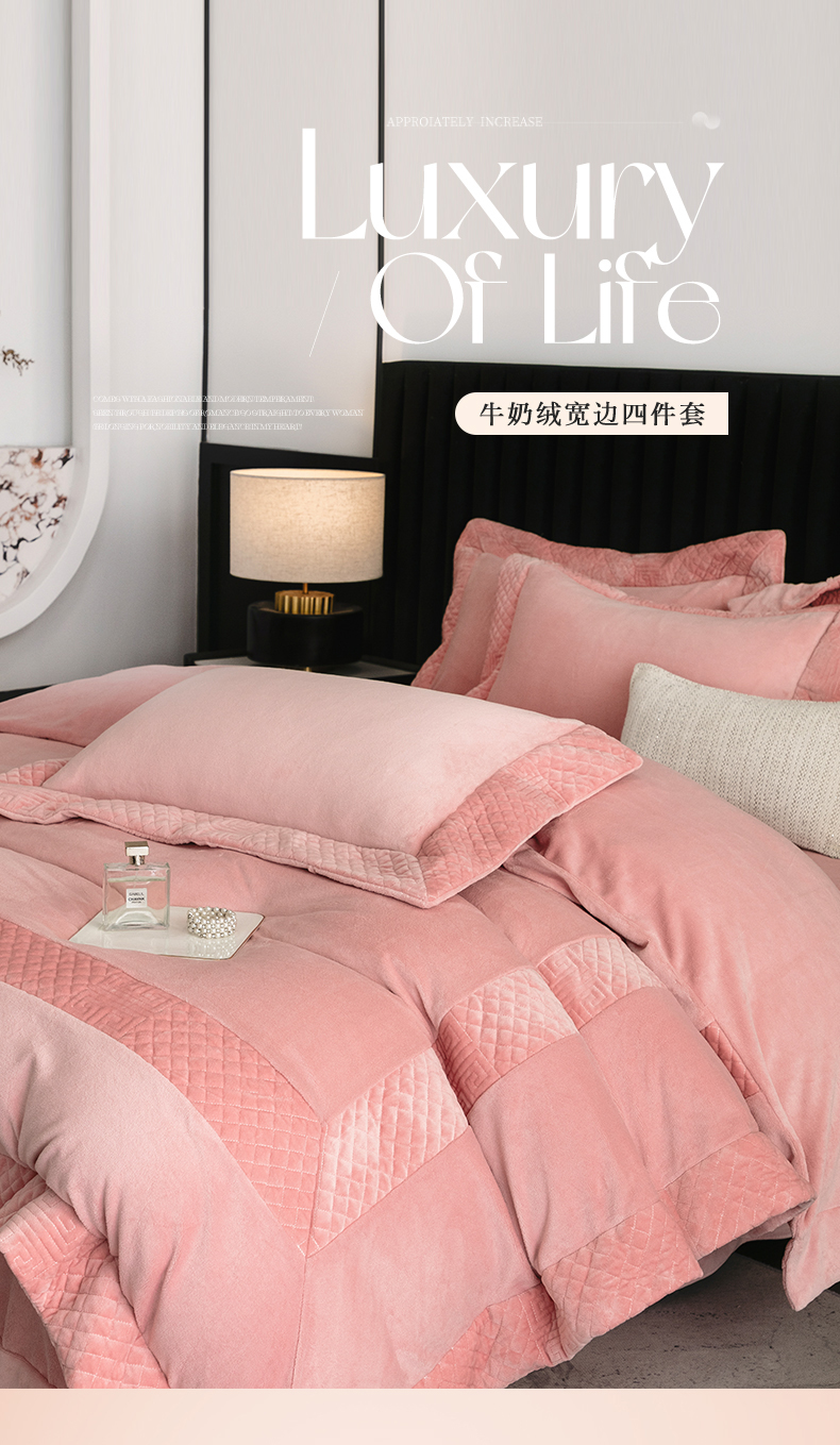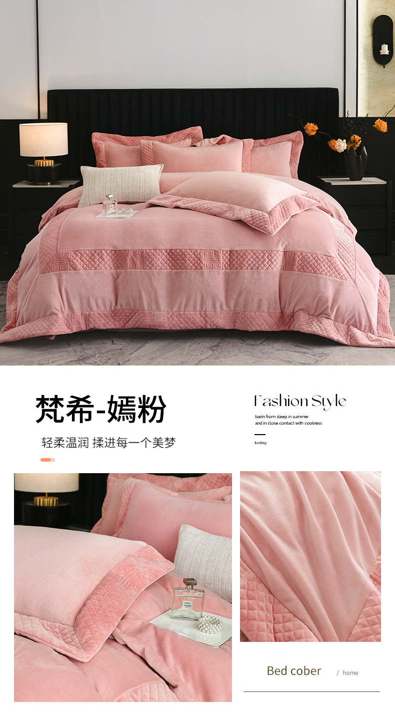 商品名称:保罗圣迪奥 2025新款牛奶绒宽边四件套-梵希 梵希-嫣粉