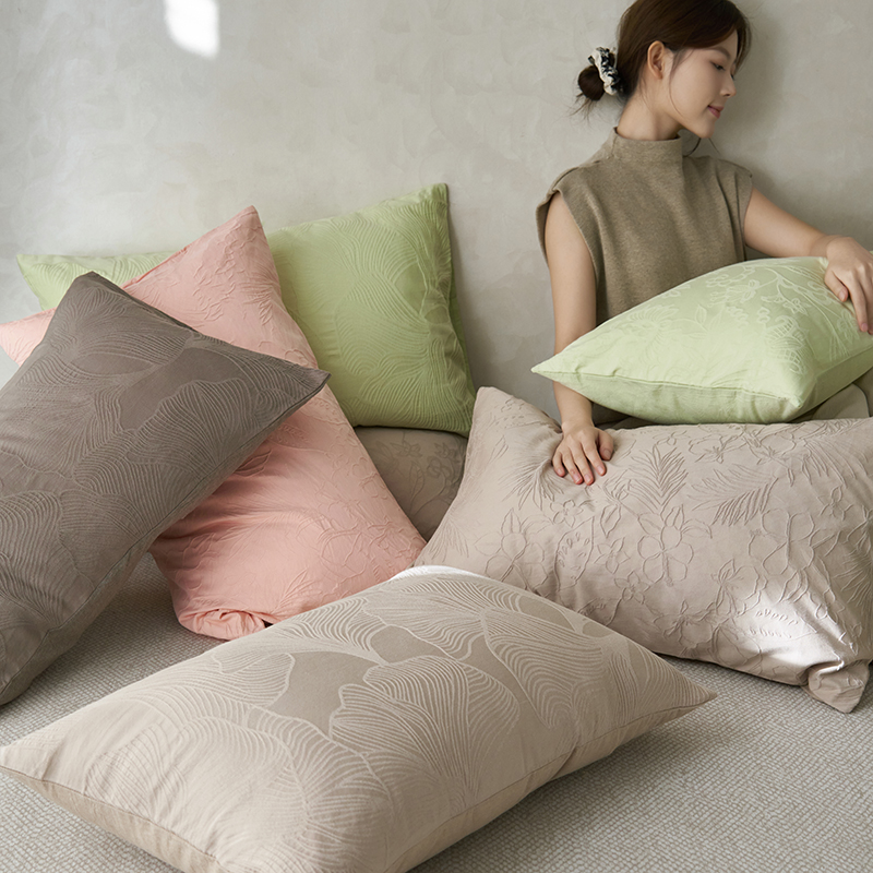 商品名称:2025春夏新品染色水洗大提花单品枕套 叶语-嫩绿