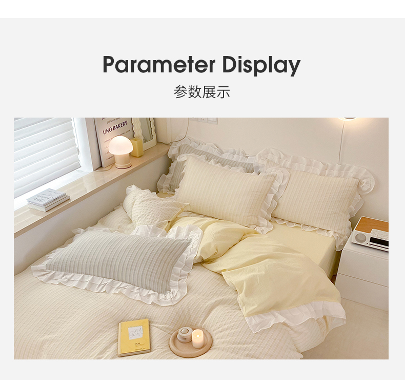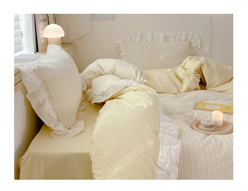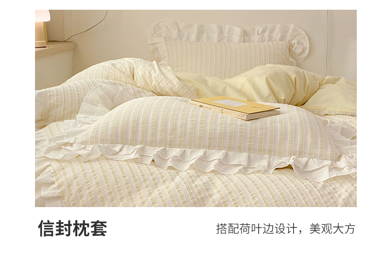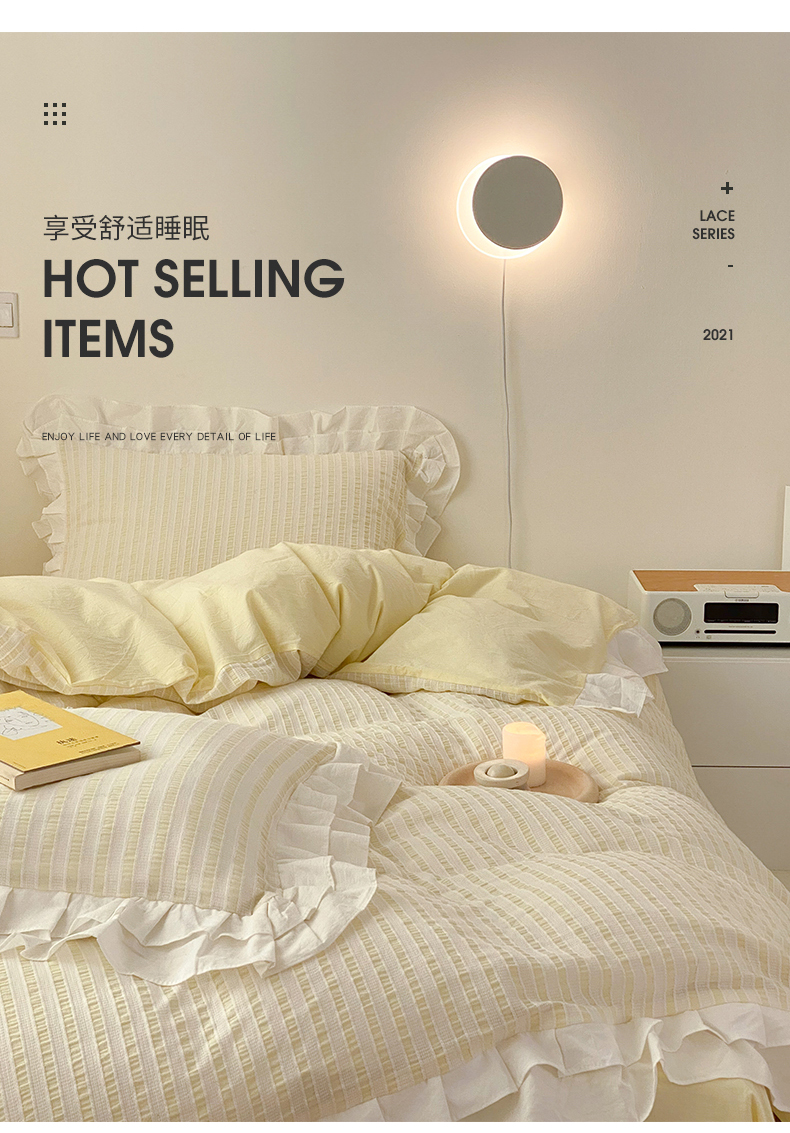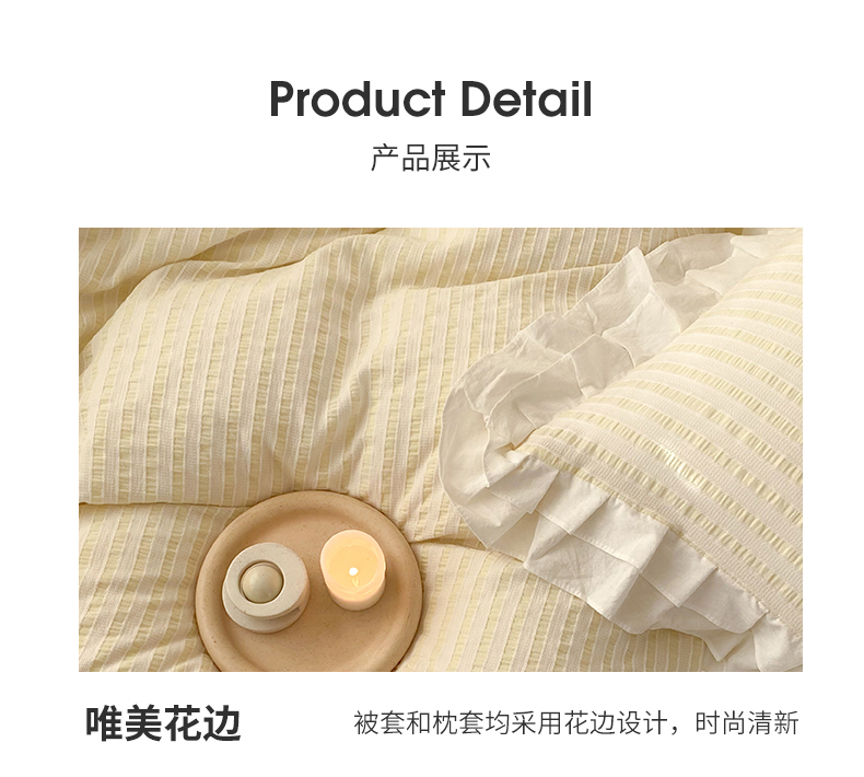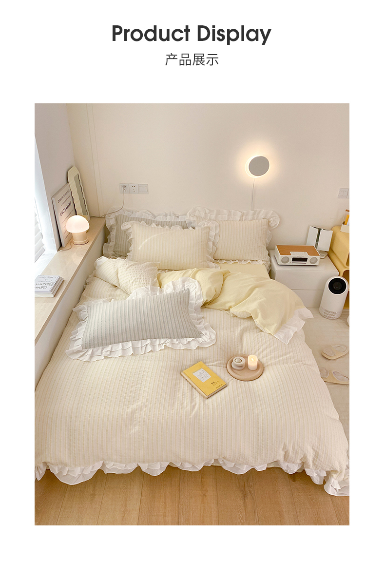 商品名称:尺素 2025新款色织水洗棉韩式花边款素系列四件套 半见