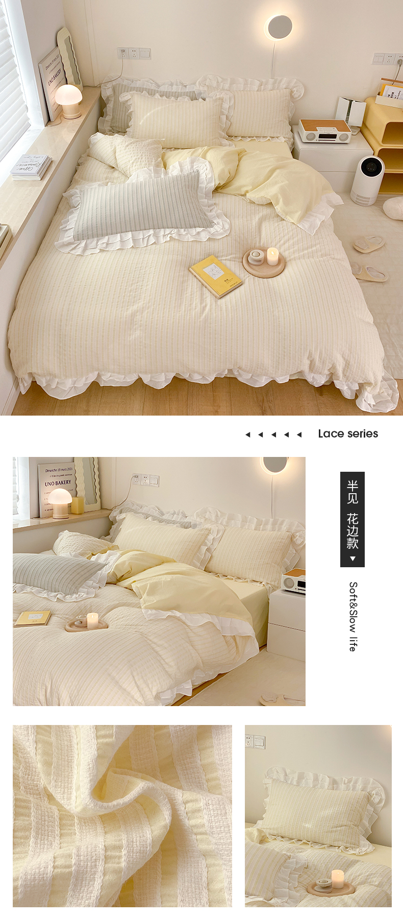 尺素 2025新款色织水洗棉韩式花边款素系列四件套 半见
