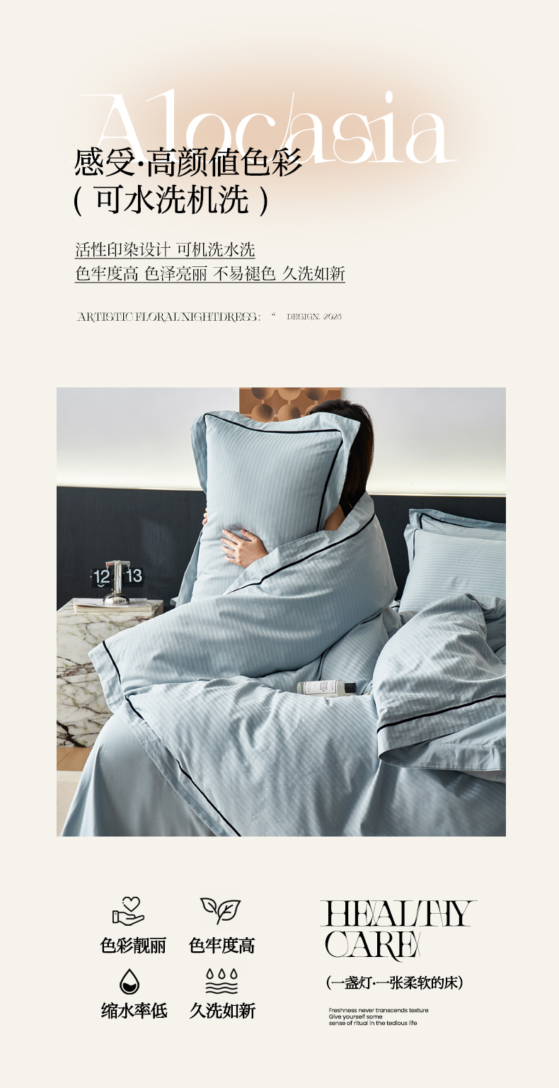 (总)三朵家纺 2026新款ins风全棉纯色双拼水洗棉四件套极简风系列,风青月白,焦糖曲奇,蓝韵雾纱,流光奶绿,抹茶奶黄,浅蓝芝士,香芋奶昔,烟墨灰,云纱可可