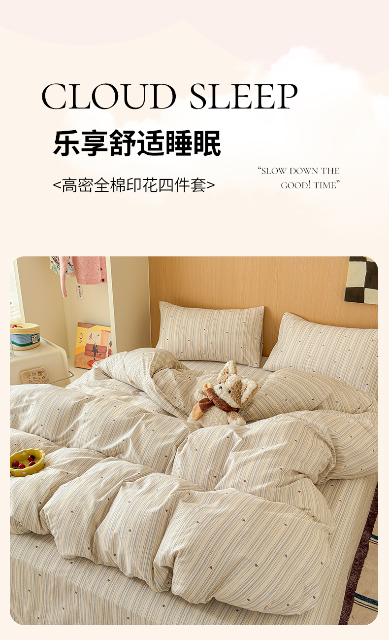 (总)感遇家纺 2025新款小清新甜系全棉四件套,百丽兔,波点小女孩,点点小狗,复古樱桃,格子草莓,格子樱桃,花间牧歌,灰条猫咪,奶绿,宁夏,森林小熊猫,甜心波点