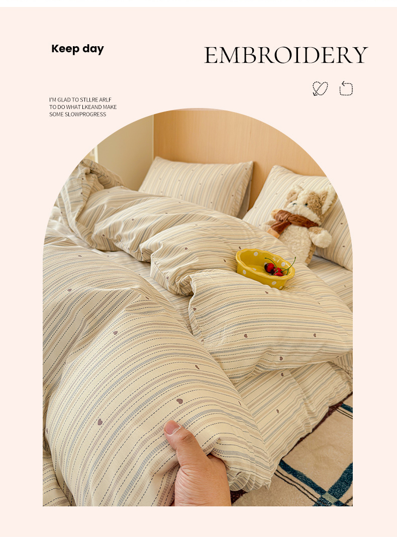 商品名称:感遇全棉软萌清新四件套 浅灰爱心