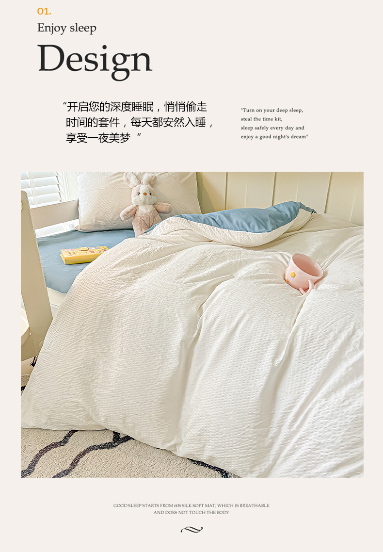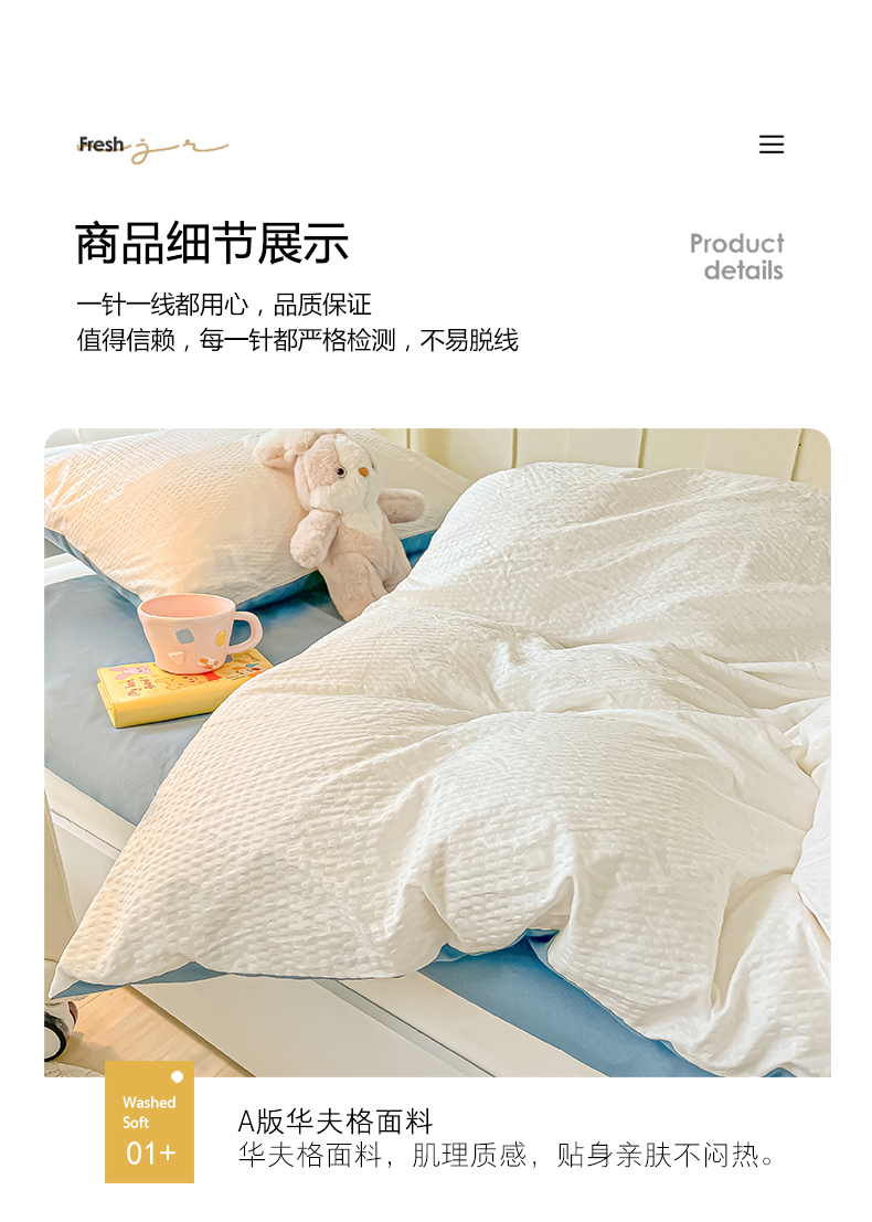 当前位置: 91家纺网 > 商品网购 > 床品套件 > 四件套 > 水洗棉四件套 > 悦织湾家纺 2025新款华夫格压泡亲肤学生宿舍三件套单人床轻奢时尚四件套 华夫格压泡-奶白+浅兰