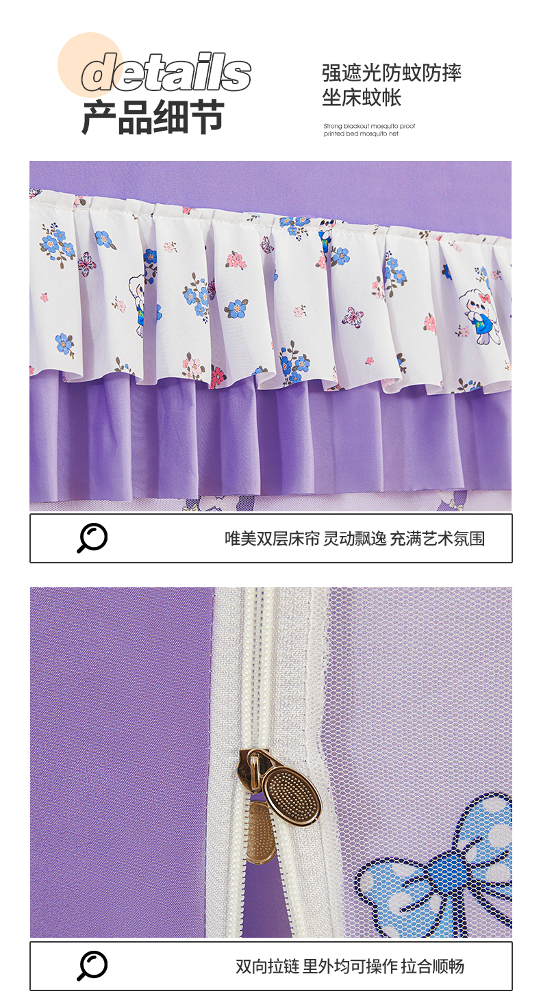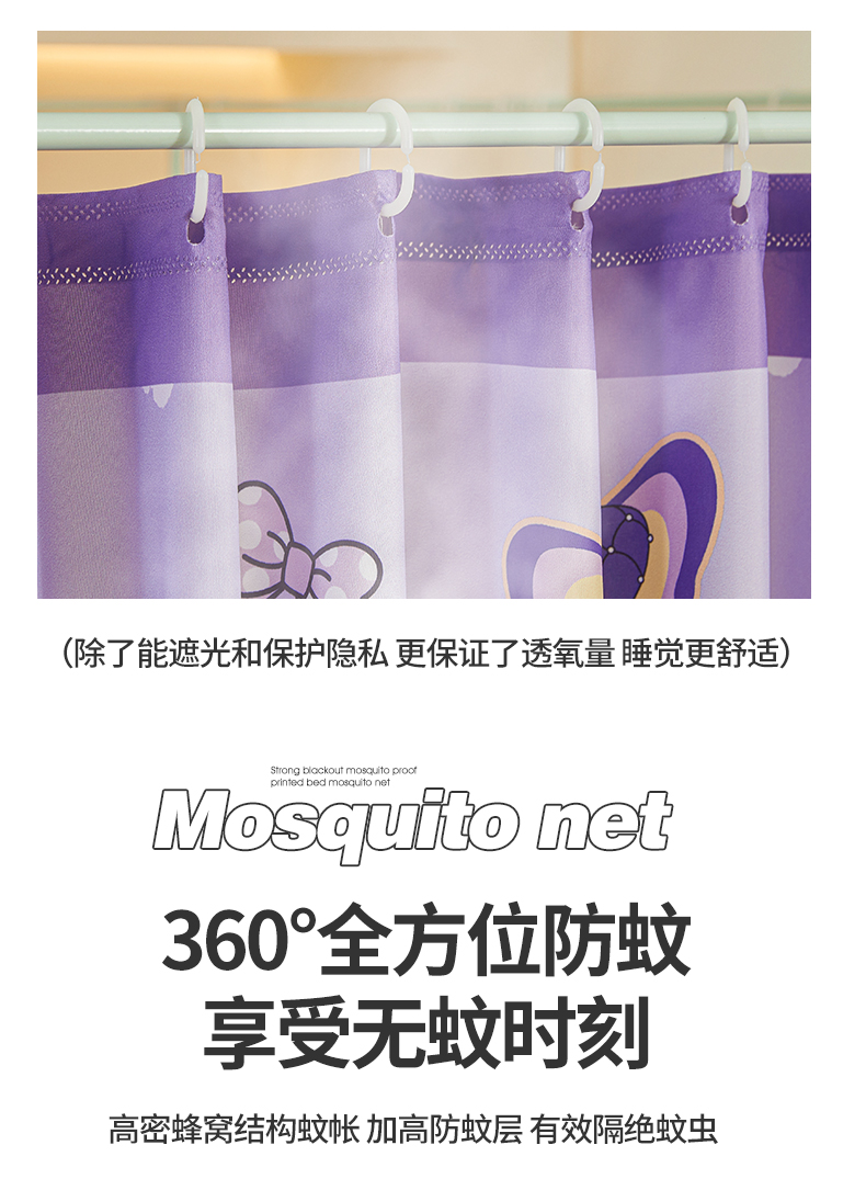 当前位置: 91家纺网 > 商品网购 > 床上用品 > 蚊帐 > 坐床式蚊帐 > 迪凡保罗蚊帐 2025新款2503专版印花遮光帘防摔坐床蚊帐实拍图 紫色甜心