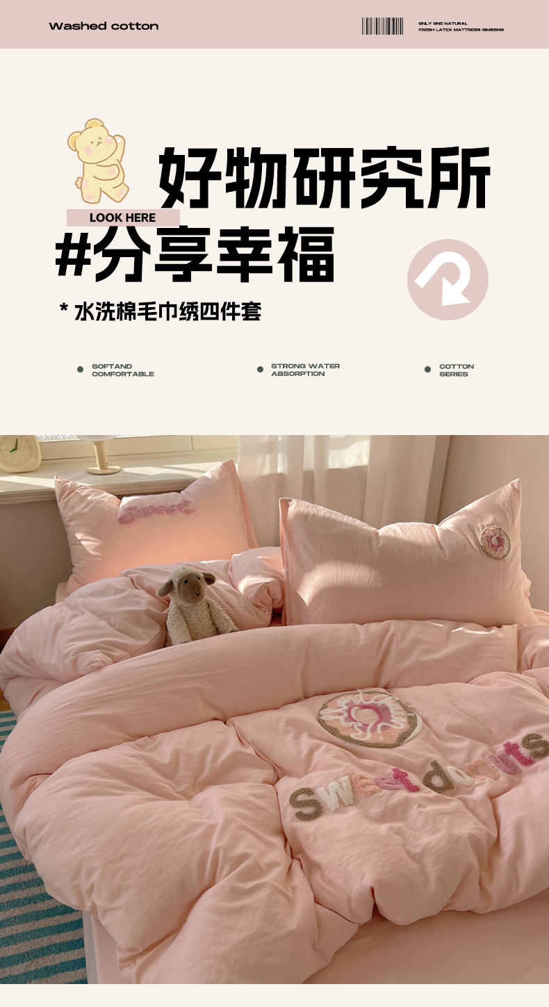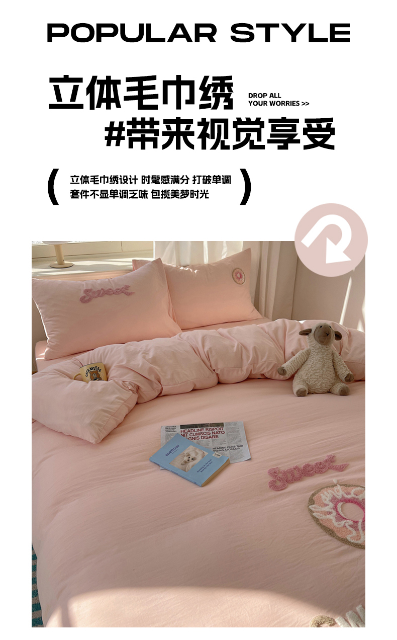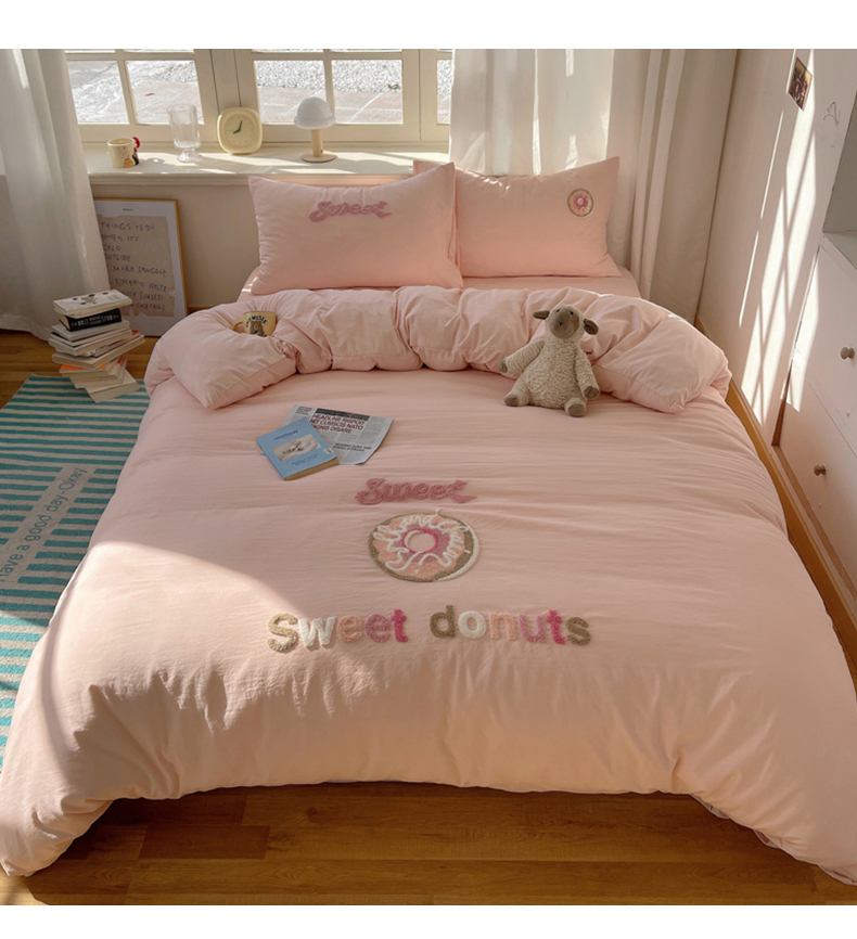 当前位置: 91家纺网 > 商品网购 > 床品套件 > 四件套 > 水洗棉四件套 > 阿曼达 2025新款爆款超甜可爱酷美毛巾绣软糯糯可以裸睡的水洗m纯色格子双拼四件套 甜甜圈-玉