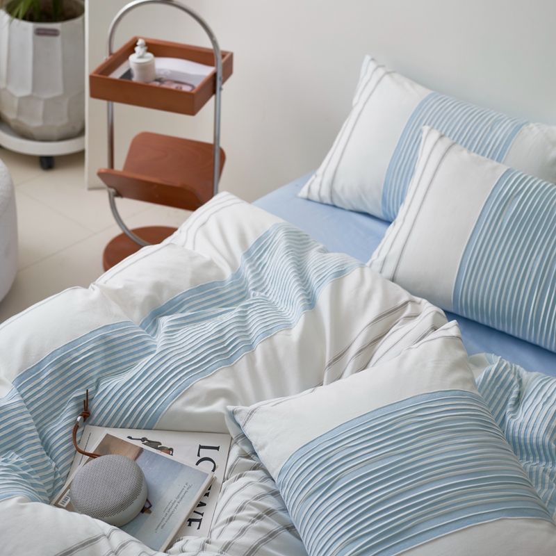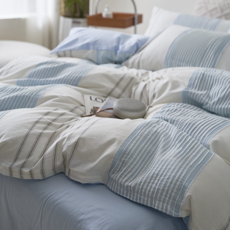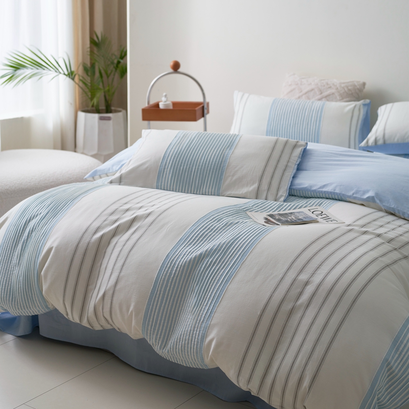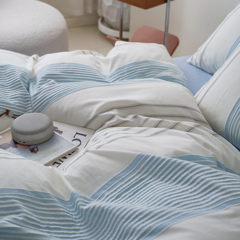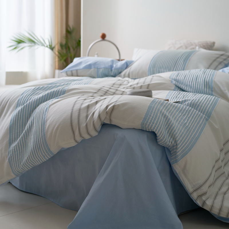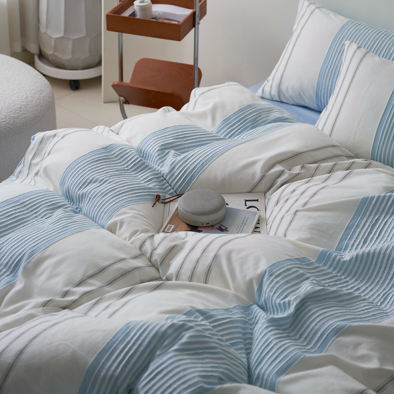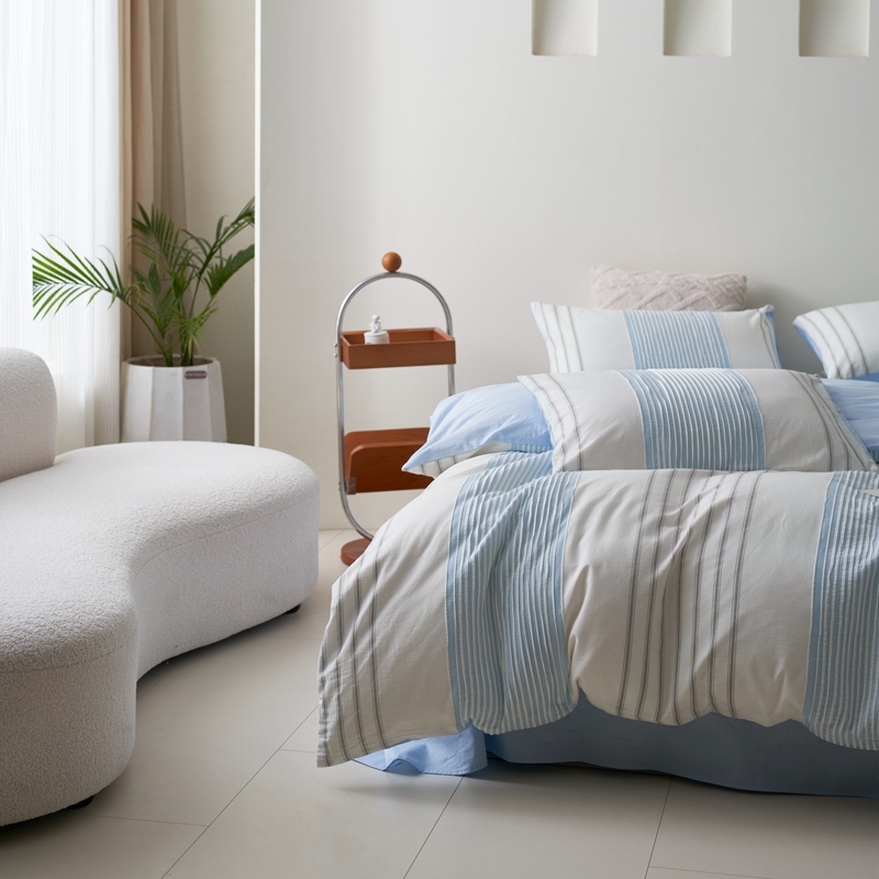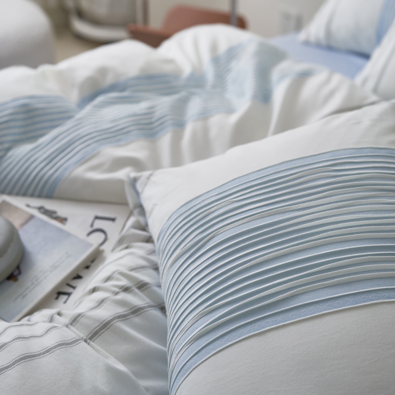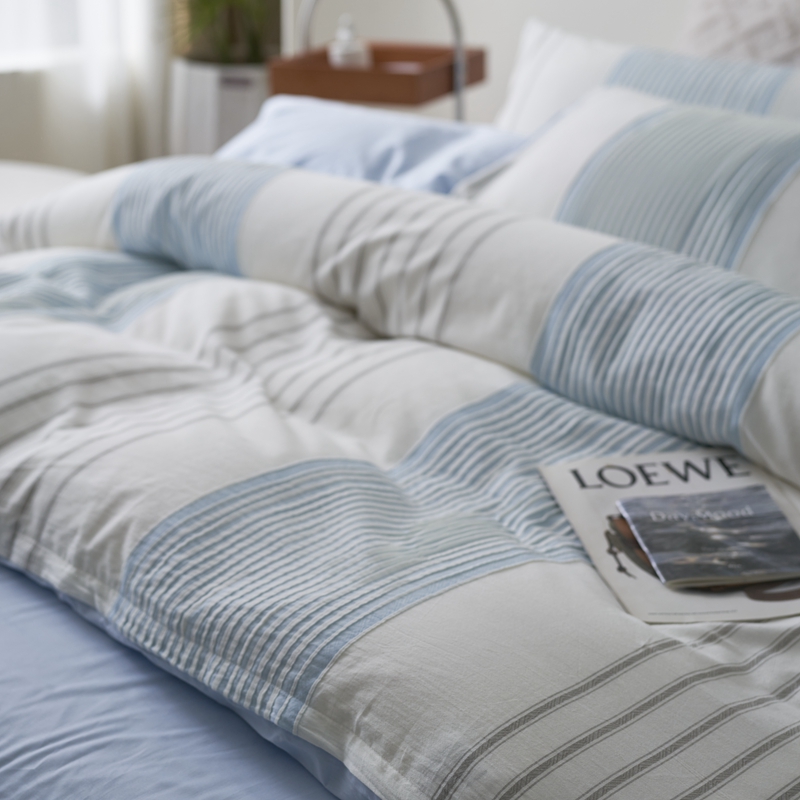 当前位置: 91家纺网 > 商品网购 > 床品套件 > 四件套 > 提花四件套 > 金丝鸟家纺 2025新款全棉三层纱提花晴岚系列四件套 晴岚 天蓝
