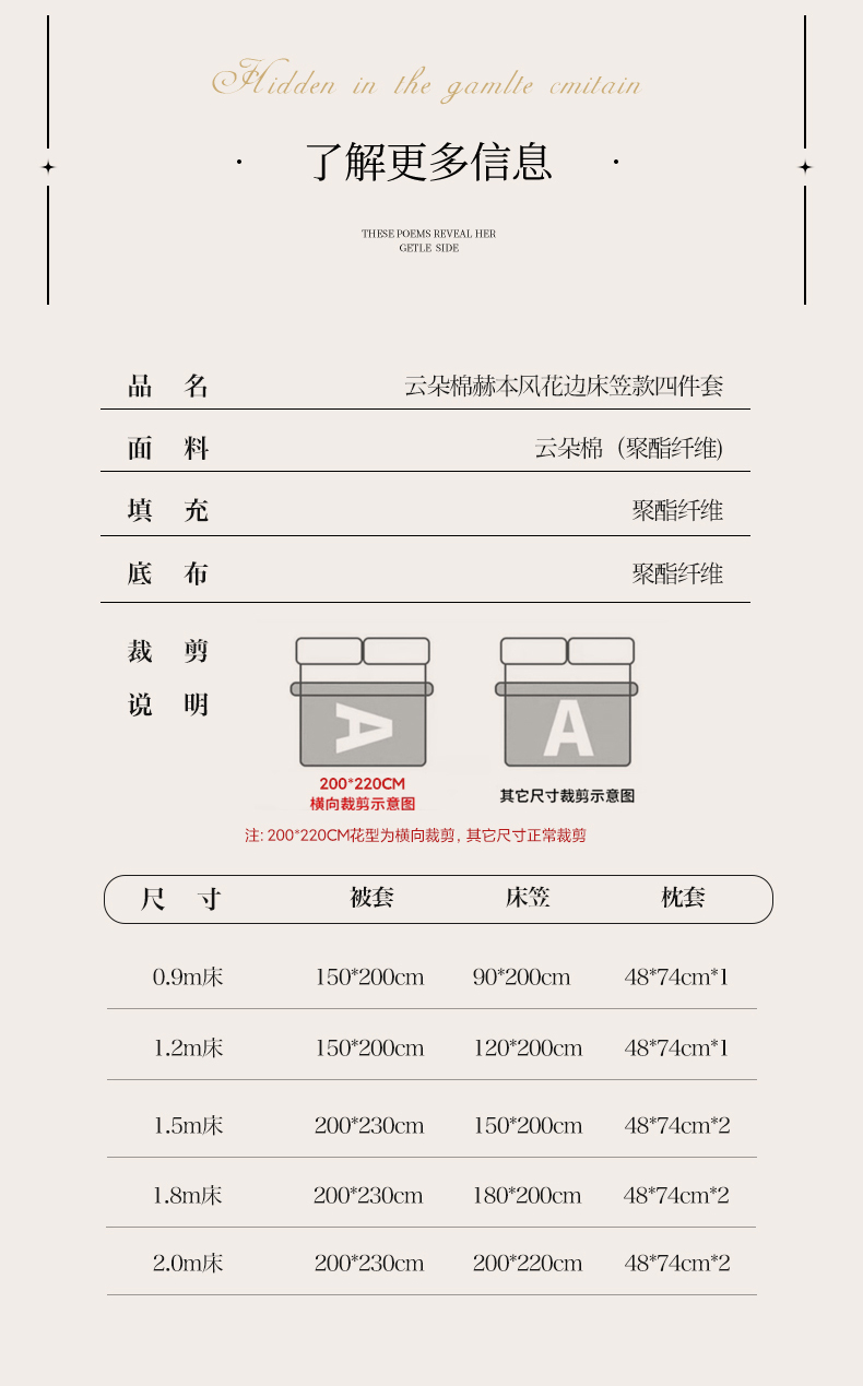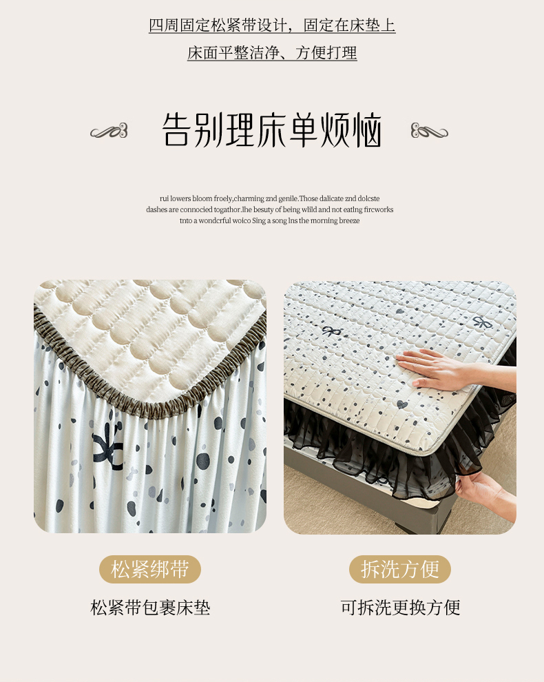 当前位置: 91家纺网 > 商品网购 > 床品套件 > 四件套 > 其它四件套 > 眠势力 2025新款赫本风花边四件套床笠款四季通用夹棉席梦思保护套法式 奇思妙想-兰