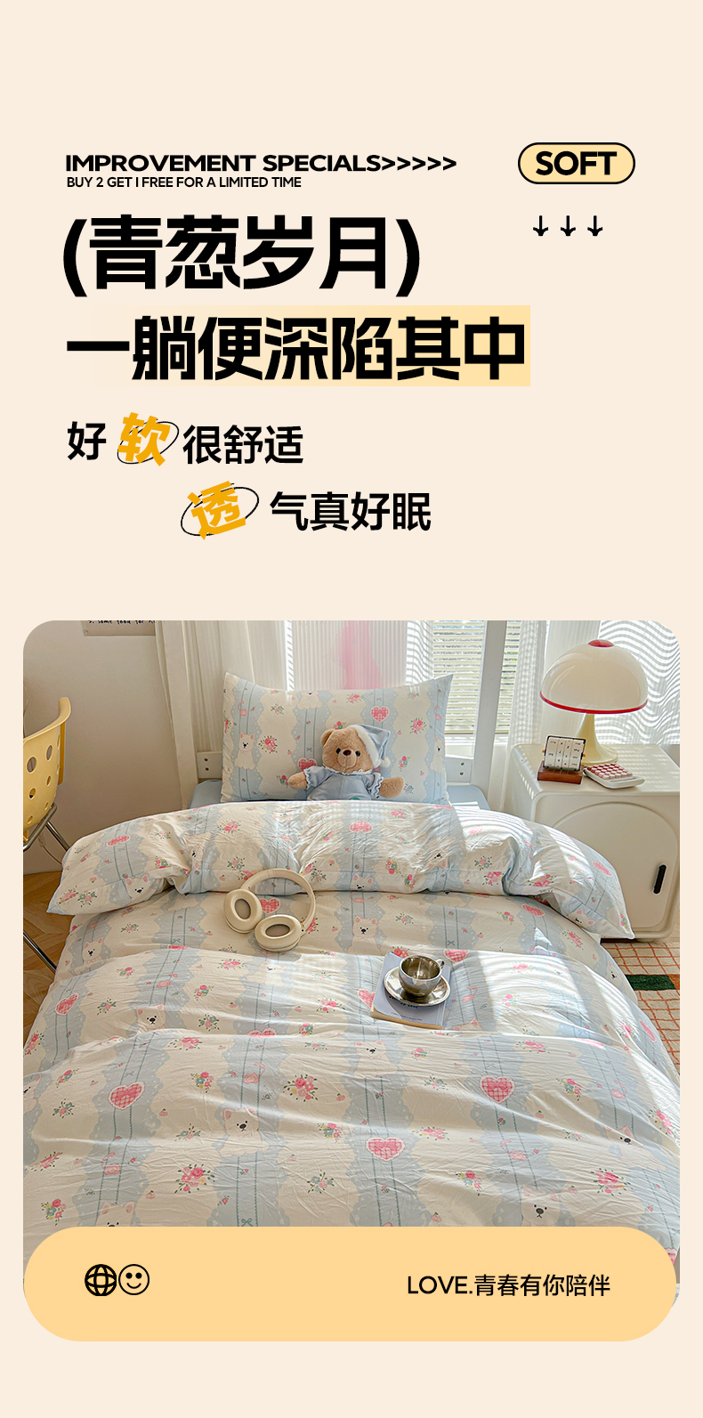 当前位置: 91家纺网 > 商品网购 > 床品套件 > 四件套 > 其它四件套 > 韩巢家纺 2025新款超柔水洗棉学生宿舍寝室被套床单三件套 小懒包